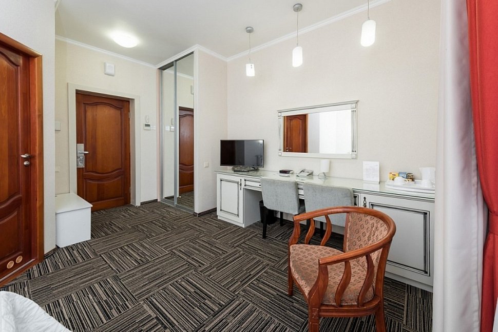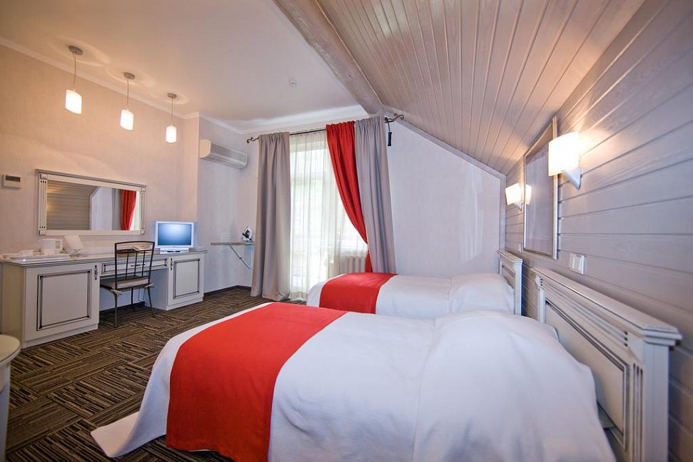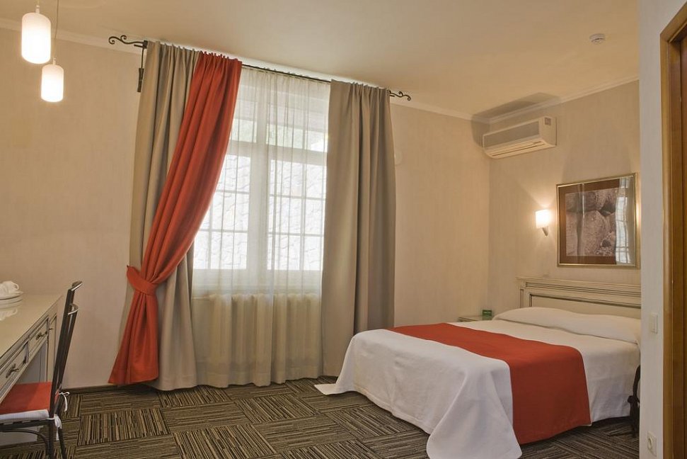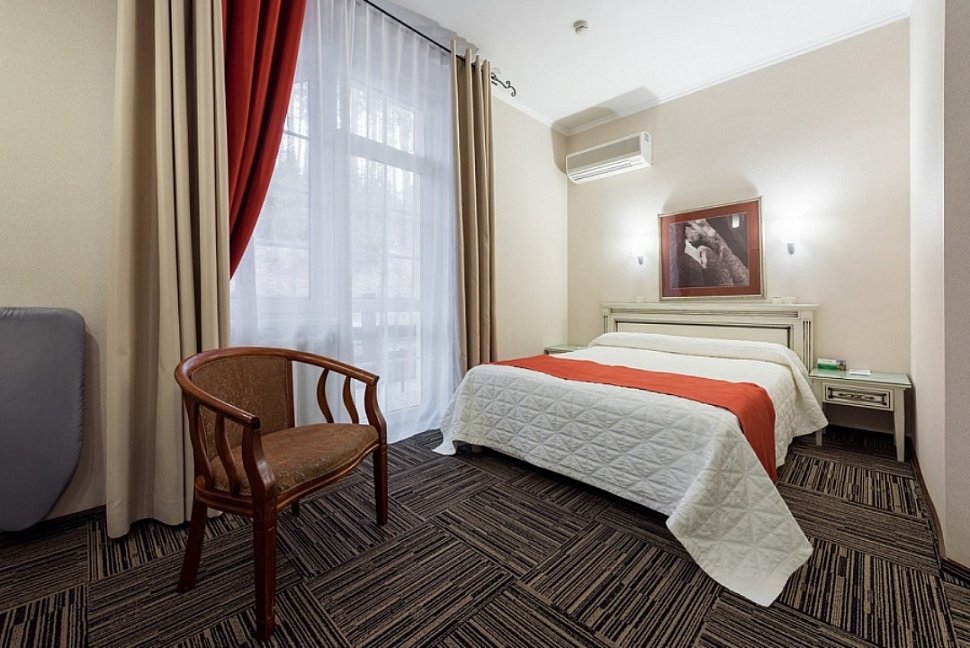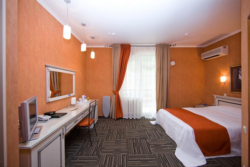 Пребывание в отеле «ЭХО» Белокуриха предлагает уютные и просторные номера, каждый из которых оснащен современной мебелью и техникой, включая бесплатный Wi-Fi, чтобы вы могли оставаться на связи в любое время. Номера оформлены в теплых тонах, что создает атмосферу домашнего уюта и спокойствия.