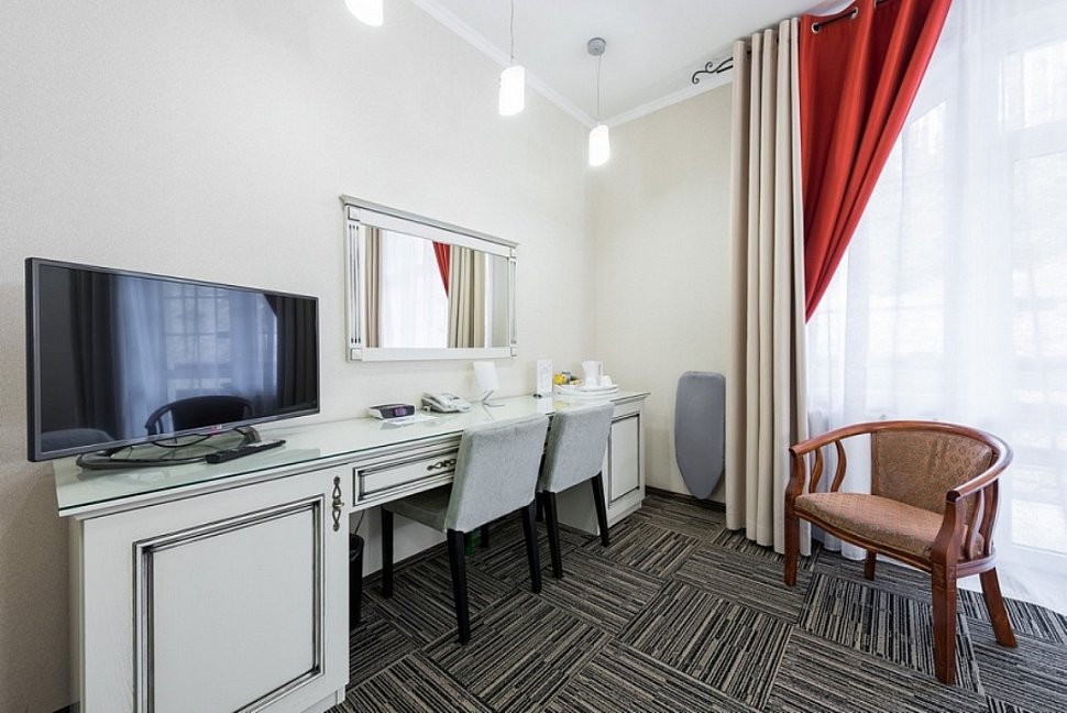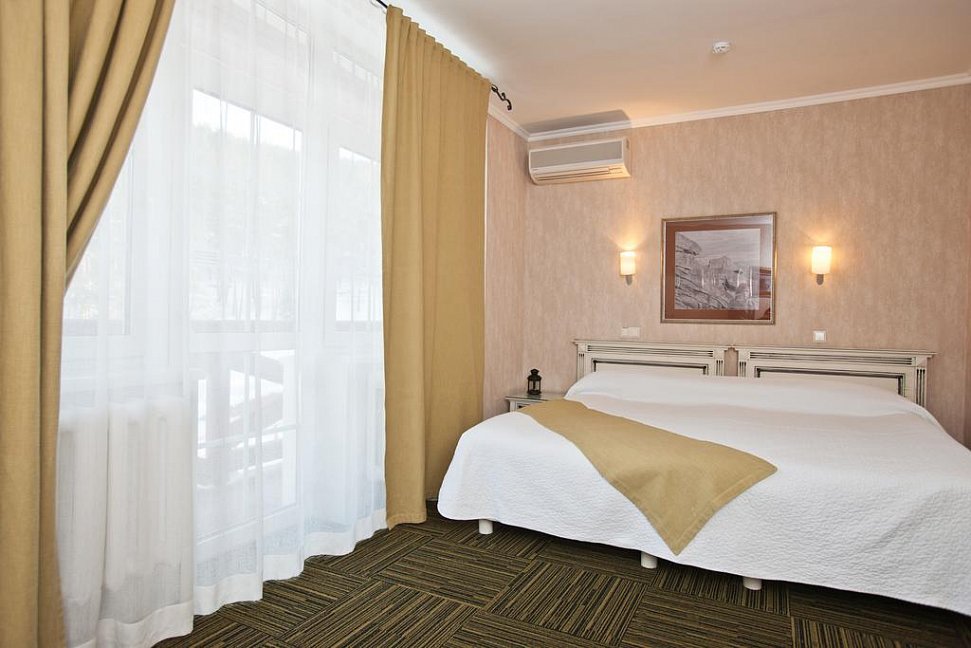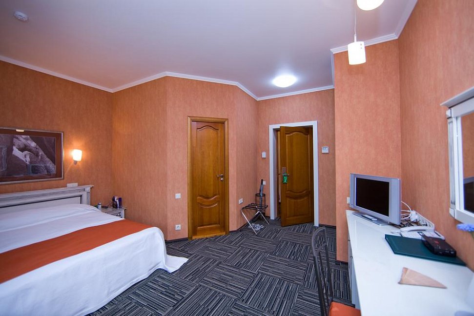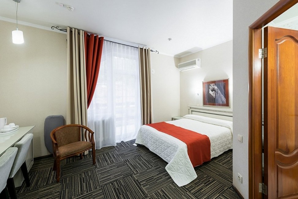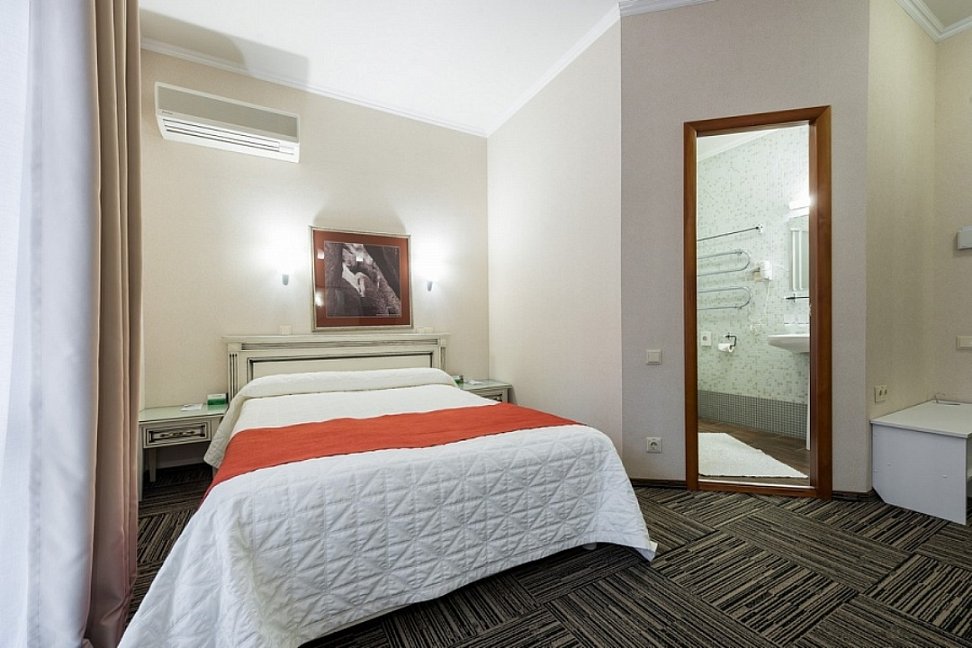 Пребывание в отеле «ЭХО» Белокуриха предлагает уютные и просторные номера, каждый из которых оснащен современной мебелью и техникой, включая бесплатный Wi-Fi, чтобы вы могли оставаться на связи в любое время. Номера оформлены в теплых тонах, что создает атмосферу домашнего уюта и спокойствия.