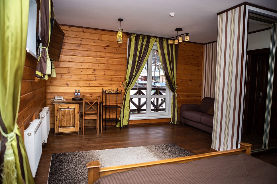 Важной особенностью нашего отеля является то, что все корпуса изготовлены из натурального дерева. Это способствует глубокому здоровому сну, комфортному отдыху, естественному снятию стресса. К вашим услугам 29 комфортабельных номеров категорий: Стандарт, Стандарт +, Делюкс, Люкс, Люкс +, Семейные апартаменты.