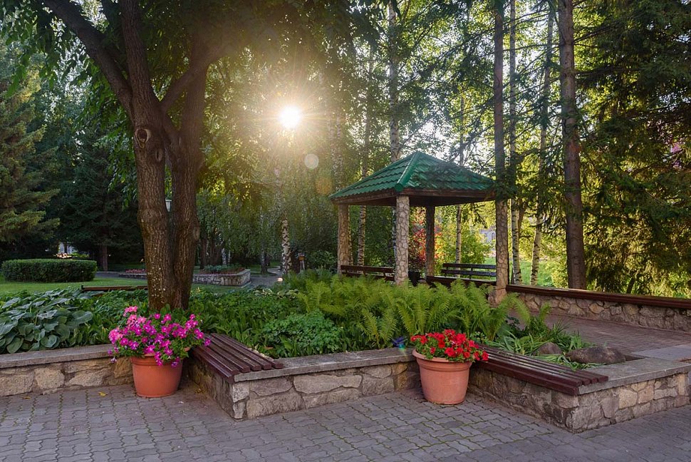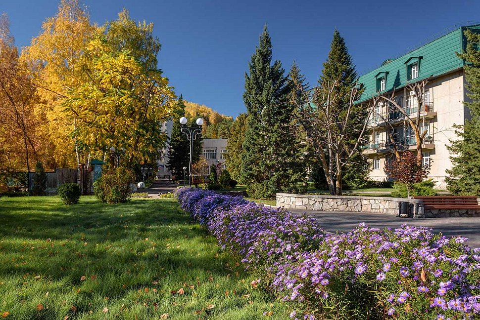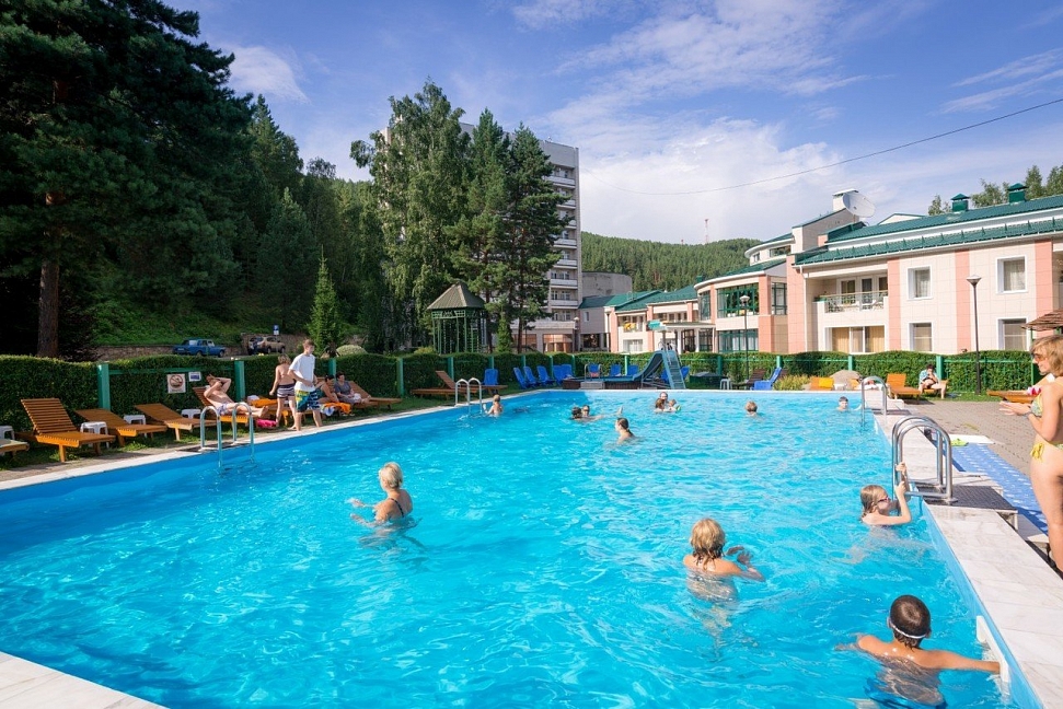 Для активного отдыха гостей ожидают различные спортивные площадки, тренажерный зал, бассейн, а также организуются экскурсии по живописным местам Белокурихи и Алтайского края.