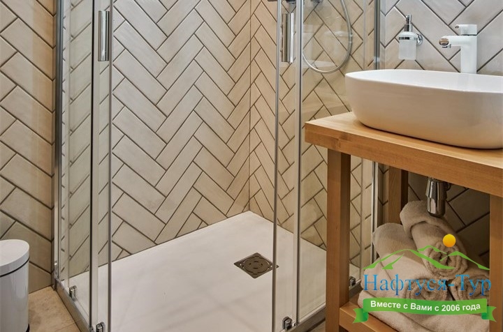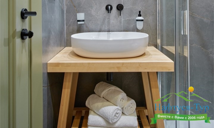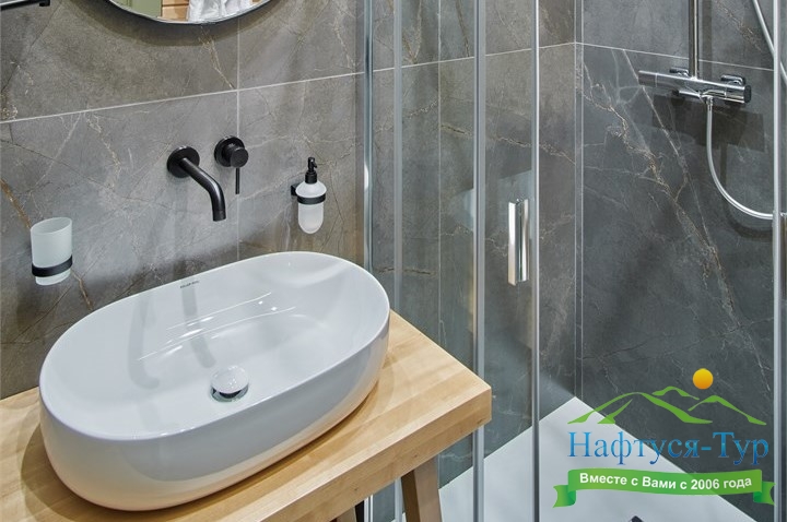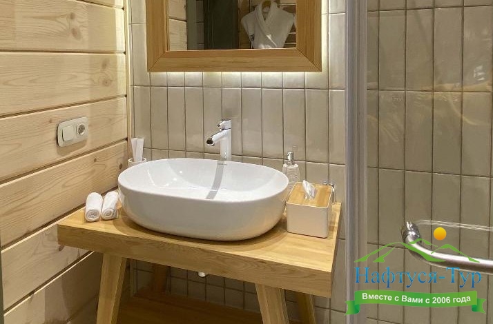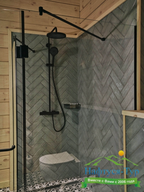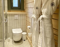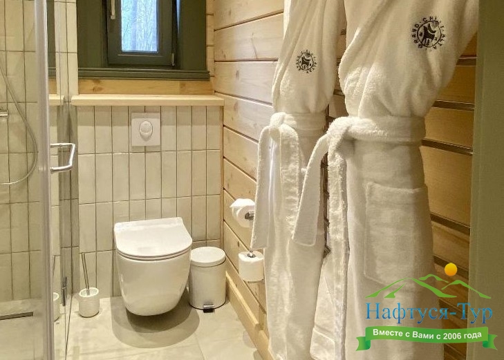 2 санузла, с душем, тапочки, туалетные принадлежности, фен, халат