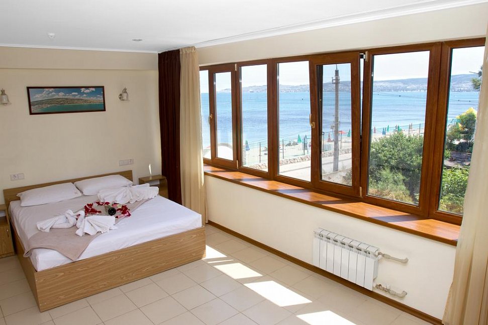 Наш отдых был незабываемым... Отдыхали в сентябре. Отель находится на берегу моря, вид в нашем номере был также на море, сидя на балконе, просто созерцаешь красоту, засыпаешь под шум волн! У нас были включены завтраки,