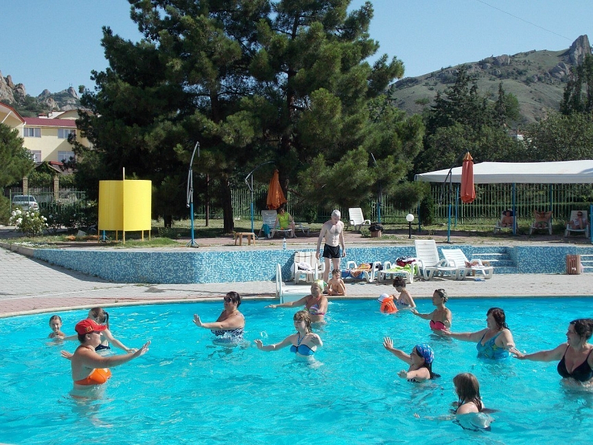 Неплохо провели время в пансионате. Данный пансионат подойдёт не очень привередливым и придирчивым людям. Здесь не всё идеально. Но везде есть свои плюсы, которые надо увидеть. И мы их, конечно же нашли. Нам всё понравилось и подошло. Расположен пансионат на самом берегу моря. Территория утопает в зелени и приятных ароматах. Есть уютная столовая, где вкусно готовят, наедаешься полностью. Там работают милейшие люди, очень терпеливы, стараются быстро подать блюдо, чтобы человек не сидел без дела. Пляж чистый, есть камни при заходе в море. В целом живописное место с видом на потухший вулкан Карадаг. На пляже инвентарь оплачивается отдельно. Есть свой чистый глубокий бассейн. Номера нормальные, всё , что нужно каждому уважающему себя человеку есть в наличии, уборка по требованию. Персонал гостеприимный и добродушный. Цены относительно вменяемые. Мы обязательно приедем сюда в следующем году!!! Рекомендуем всем для семейного отдыха этот пансионат!!!