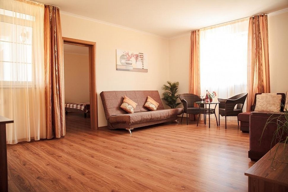Останавливались в данном отеле семьёй из трёх человек этим летом. Брали номер категории Полулюкс в котором благополучно разместились, свободно передвигались, не чувствовали дискомфорта. В комнате был в наличии телевизор, шкаф, сейф, раскладной диван, стол, большая кровать.
