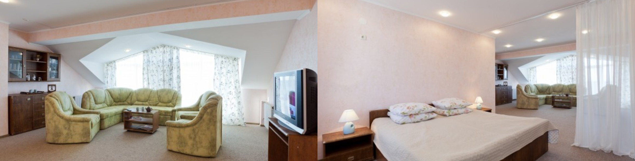 Санаторий «Полтава-Крым» в Саках предоставляет своим гостям возможность выбрать идеальные условия проживания. На территории расположены четыре корпуса, каждый из которых предлагает номера различных категорий – от комфорт (первая категория) до полулюкса и джуниор сюит. Любители уединения и природы оценят проживание в номерах, выполненных в стиле деревянного сруба.