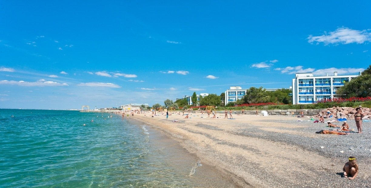 Роскошный пляж санатория «Полтава-Крым» в Саках – это истинное убежище для любителей моря и солнца. Расположенный всего в 20 метрах от санатория, пляж обещает идеальный отдых на золотистом песке длиной 100 метров. Здесь каждый найдет свой уголок рая: будь то на бесплатных лежаках под защитой зонтиков или в теплых объятиях морской волны. Пляж санатория «Полтава-Крым» идеально подходит для тех, кто ценит комфорт и качество в каждой детали своего отдыха. Позвольте себе окунуться в атмосферу спокойствия и наслаждения, которую предлагает наш собственный пляж – оазис чистого удовольствия и релаксации.