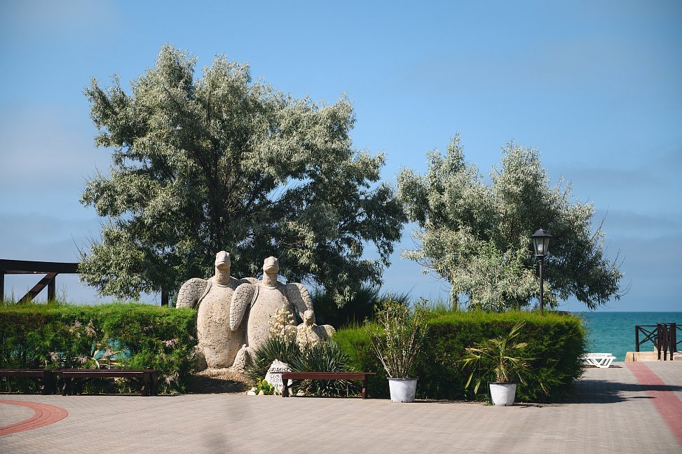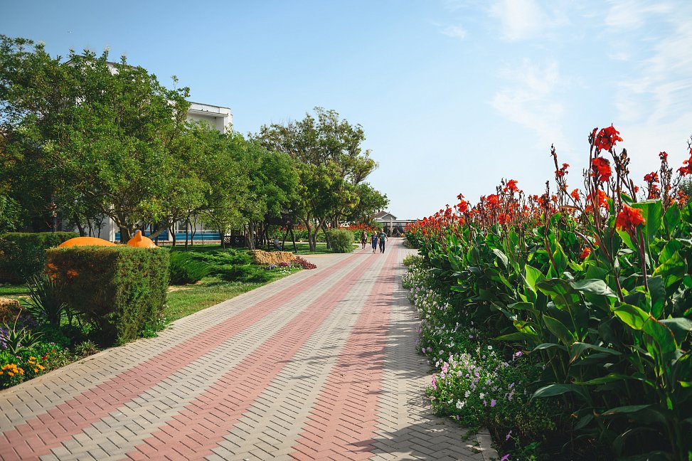 Природное великолепие и продуманное благоустройство территории создают идеальные условия для полноценного отдыха и восстановления сил. Ухоженные зеленые аллеи, цветущие клумбы и уютные беседки для отдыха – все здесь располагает к спокойным прогулкам и медитативному отдыху. Прозрачное море и мягкий песчаный пляж, расположенные в шаговой доступности, дополняют картину идеального места для отдыха.