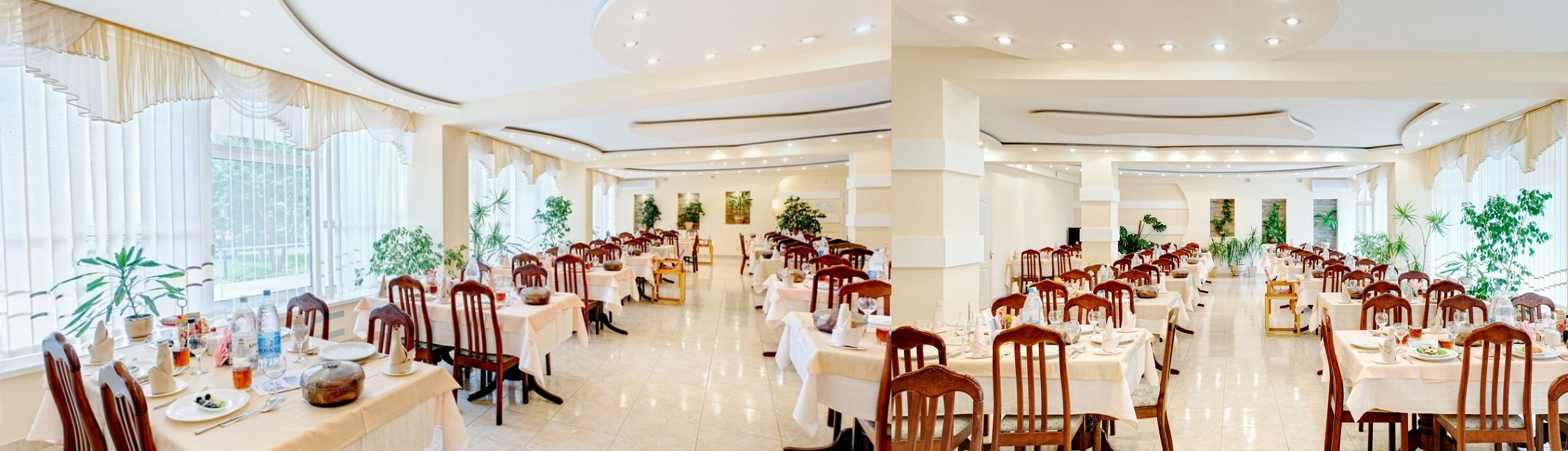 Проживающие в номерах категорий "Джуниор Сюит", "Полулюкс" и "Люкс" имеют привилегию питаться в эксклюзивном банкетном зале санатория. Здесь каждое блюдо – это произведение кулинарного искусства, созданное для того, чтобы удовлетворить самые изысканные вкусы.