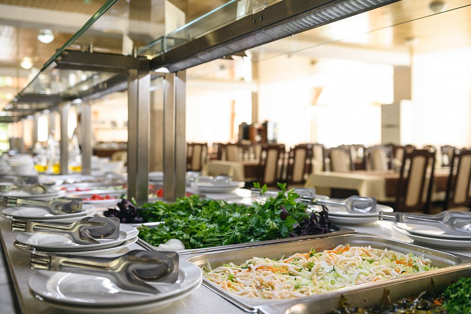 Питание в санатории «Полтава-Крым» в Саках – это настоящее кулинарное удовольствие, включенное в стоимость путевки. Гости санатория могут наслаждаться трехразовым питанием по системе "шведский стол", предлагающей обширный выбор блюд для всех вкусов. Для детей предусмотрено четырехразовое питание, составленное с учетом питательных и вкусовых предпочтений юных гурманов.
