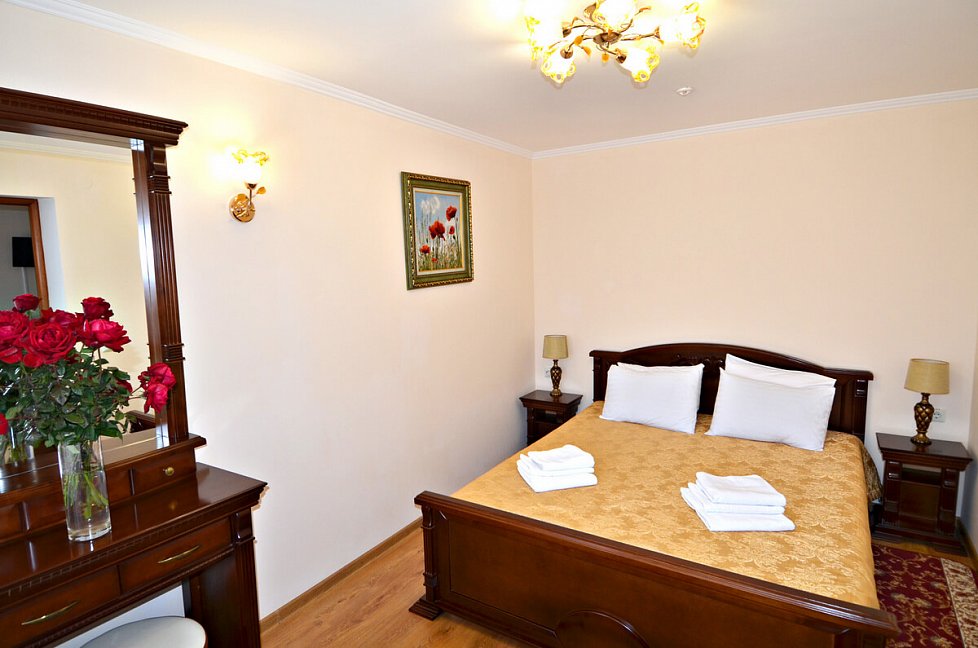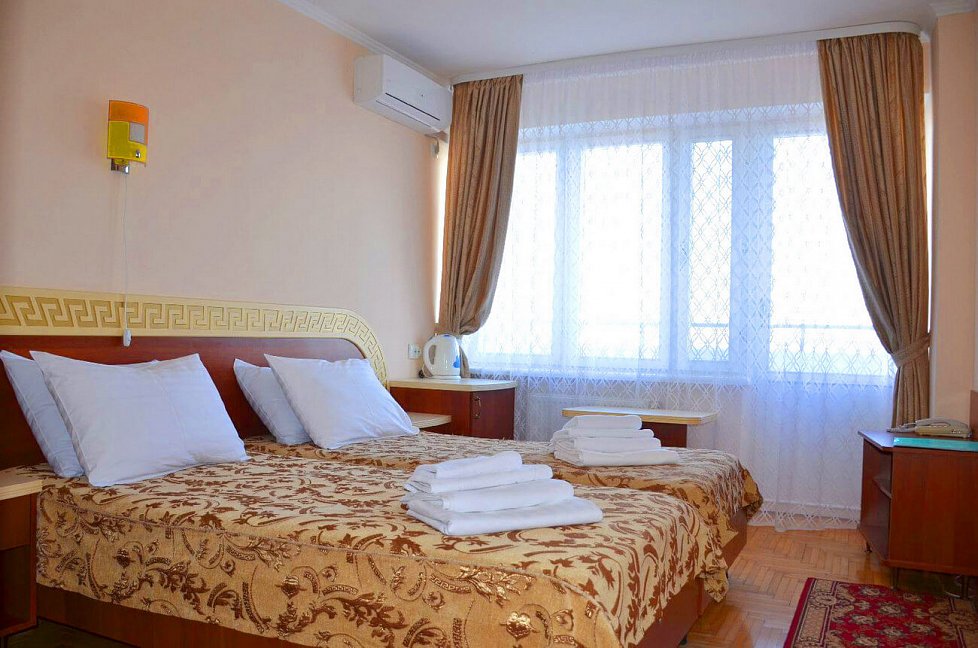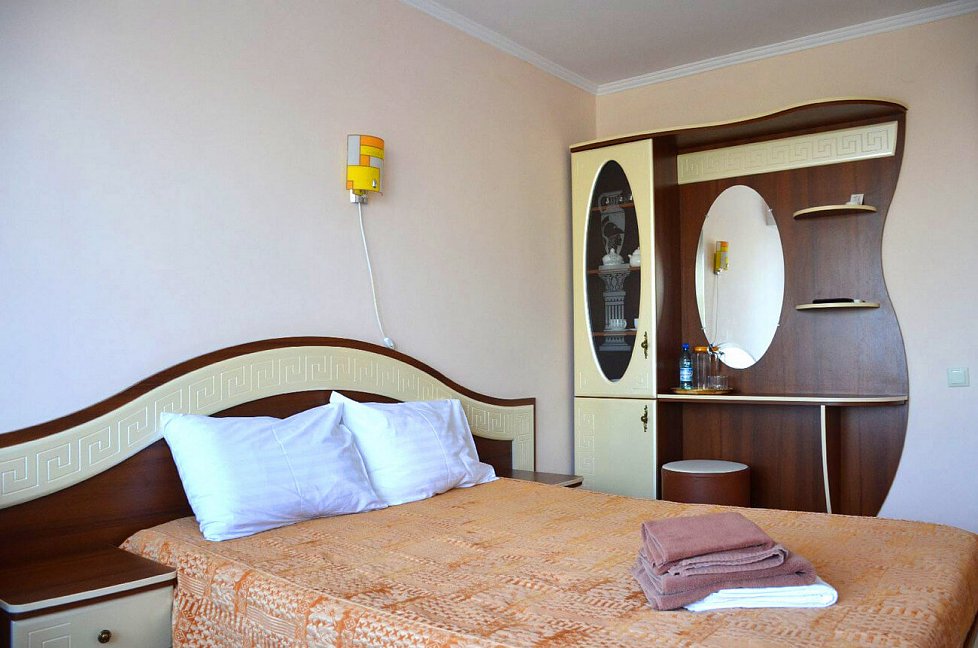 Из положительного: очень красивая, ухоженная территория, много цветов и статуй, фонтанов, деревьев и кустарников. Территория большая, удобно и гулять и заниматься спортивной ходьбой и прочее. На этом плюсы и закончились. теперь о минусах - на 4 звезды отель санатория не тянет! Туалетная бумага в номере -из макулатуры -самого дешевого качества! Кондиционеры в номере не работали -их не подключили, хотя днем температура достигала до 33 градусов в плюсе! Халатов в номерах типа "Престиж" - отсутствуют, что уж говорить о номерах ниже рангом! А было бы удобно ходить на процедуры именно в халатах, как это делают во многих санаториях по всему миру! В номерах нет даже настенных часов - очень не удобно! А телевизор хоть и плоский, но всего 22 или 24 дюйма - очень маленький - причем на пустой стене напротив кровати. Теперь о процедурах - у меня была путевка с лечением - нужные процедуры даются в минимальном количестве, зато не "профильные" процедуры идут номером 11 или12 - например, орошение десен, ингаляции, галотерапия (соляная комната) - конечно для общего укрепления организма - это здорово, но хотелось бы процедур по профилю заболевания. Конечно, можно процедуры назначить и докупить! Но зачем же так делать??? Во всем чувствуется "совдеповщина", такое ощущение, что ты в 90-х годах 20 века. За все нужно платить и доплачивать! Мыслимо ли - бассейн на территории санатория - платный для отдыхающих! Заплати 300 рэ, потом пользуйся... Далее - водо-грязелечение - если отдыхающий погружается в ванну в голом виде - то и мед. персонал должен быть того же пола. А тут тебя мажут грязью приятные женщины среднего возраста (мед. персонал), причем мажут везде рукой в перчатке с грязью и по половым органам тоже!!! В кабинетах получения водо-грязелечения тоже нет настенных часов - процедуру отпускают с помощью песочных часов, пусть так, но для пациента их не видно и понять продолжительность процедуры (сколько осталось) - не возможно. Вот и лежишь, "получаешь процедуру", в полной тишине... А можно было бы включить фоновую спокойную музыку - это бы только положительно влияло на процедуру! Далее - стол, на котором тебя мажут грязью - абсолютно плоский, нет поручней. Как пациенту, обмазанному грязью перевернуться? или встать после процедуры если пациент 60+ или с ограничениями движения??? Было бы идеально - если бы стол мог изменять угол наклона - вплоть до почти горизонтального состояния -это было бы очень удобно!!! Ах да, это было бы очень затратно для санатория, но при ценнике в средний сезон, примерно, в 5000 рублей в сутки с одного пациента - думаю это не огромная проблема! Теперь питание. Питание подается в столовой по заказному меню. Заказал за сутки из предложенного - и получи! Не очень удобно для 4 звездочного санатория! Идеально было бы - шведский стол, тем более что санаторий почти всегда заполнен. Ах, да, это опять удорожание. Еда однообразная, если подают рыбу -то она всегда сухая, что такое сметана или майонез или соус - здесь видимо не знают - кладут как по "карточкам". Мне могут возразить - на столе всегда стоит кетчуп, горчица и хрен, но майонеза, сметану -нет!!! Вот и получается что все салаты - очень сухие! В вечернее время проводятся дискотеки, караоке и т. д. За 2 недели - фильмы показали всего 2 раза - можно было бы и почаще!