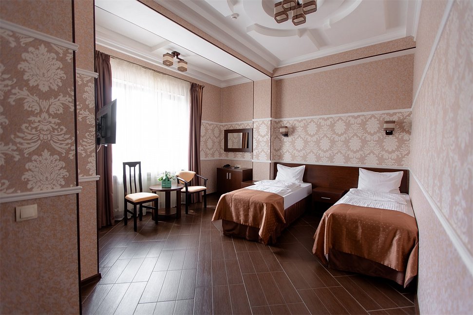 Поездом до ж/д вокзала г. Ессентуки, далее пройти пешком 670 м до отеля.