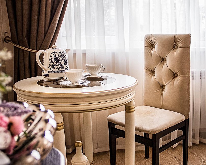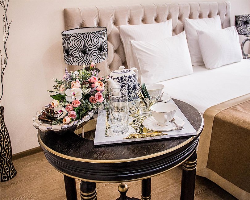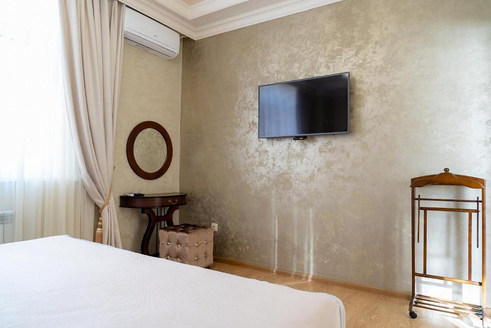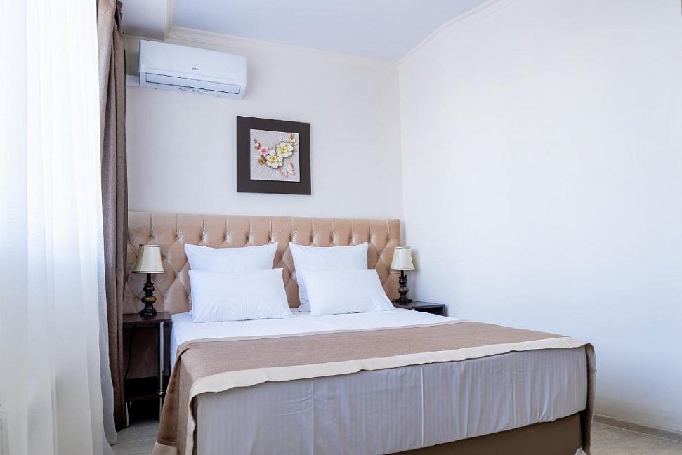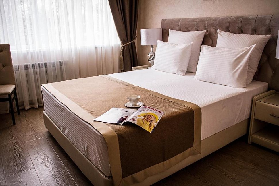Отель имеет 18 номеров разных категорий комфортабельности: одноместные номера, двухместные номера,двухместные номера, полулюксы, люкс и семейный люкс.