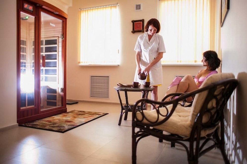 - собственный бювет с минеральной водой: холодная «Ессентуки-Новая», холодная и тёплая «Ессентуки № 4»
