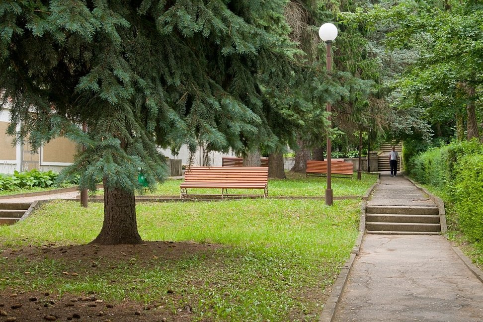 Природная красота Кисловодска. Санаторий расположен в живописной курортной зоне, окруженной зелеными лесами и горами. Это создает идеальную атмосферу для отдыха и восстановления.