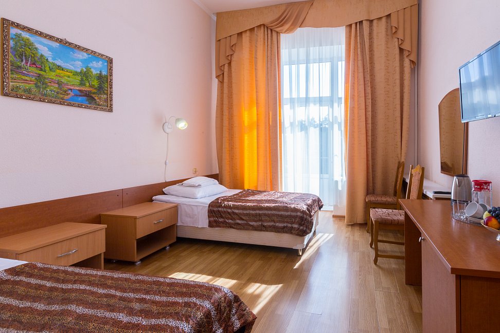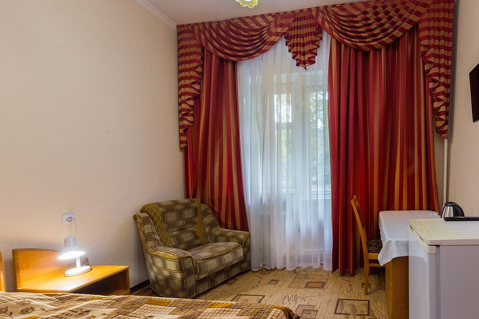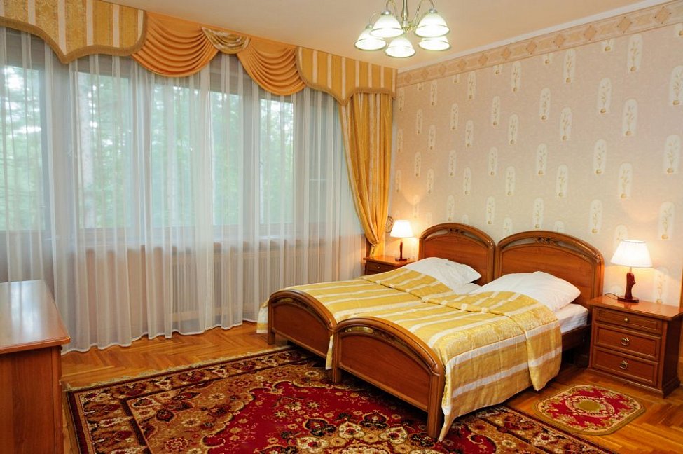 Старые номера, постельные принадлежности- матрасы, подушки, старый пахнущий ковролин,который уже не выветривается от многих пациентов. Питание очень не вкусное и однообразное....не квалифицированные повара , просто порча продуктов.