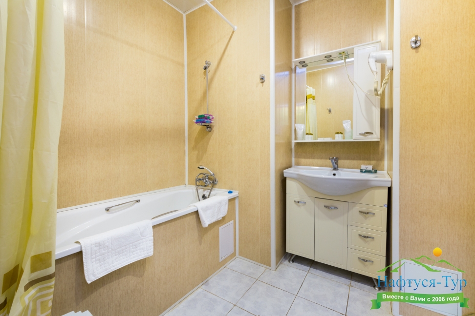 с ванной, туалетные принадлежности, фен
