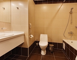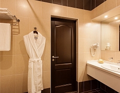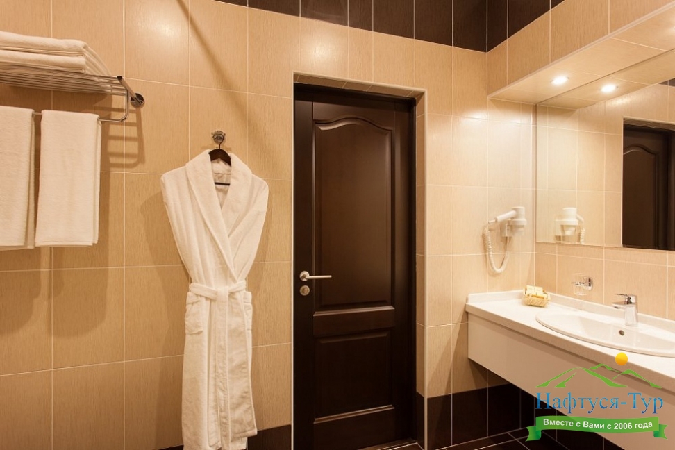 с ванной/душем, тапочки, туалетные принадлежности, фен, халат