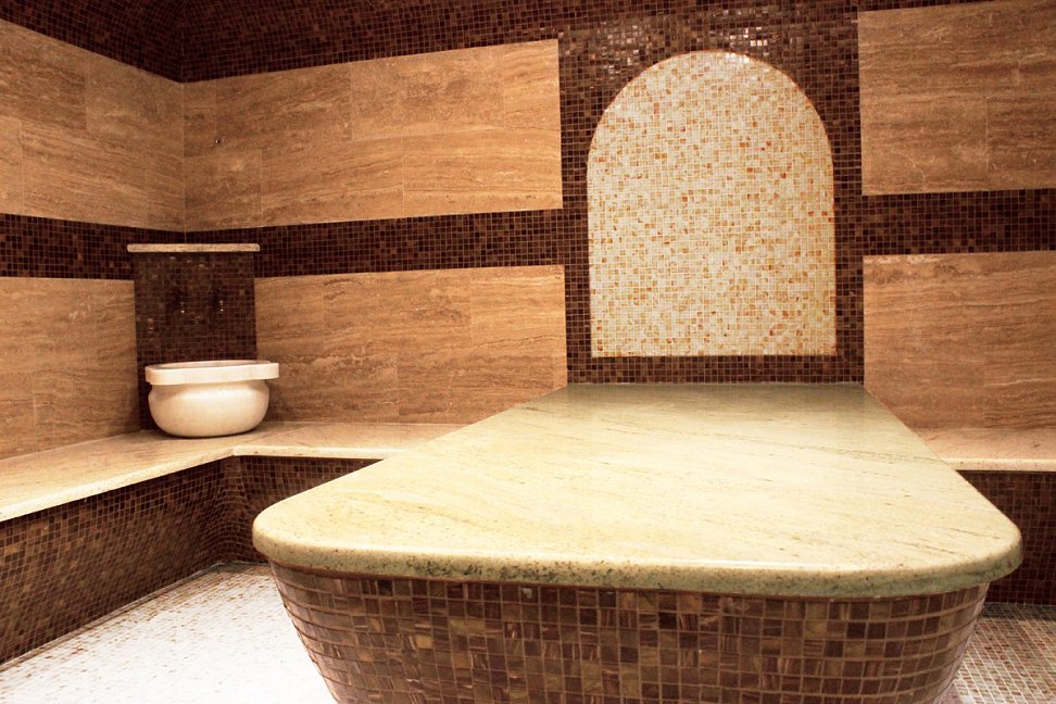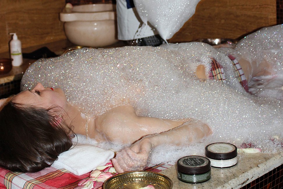 с ванной, тапочки, туалетные принадлежности, фен, халат