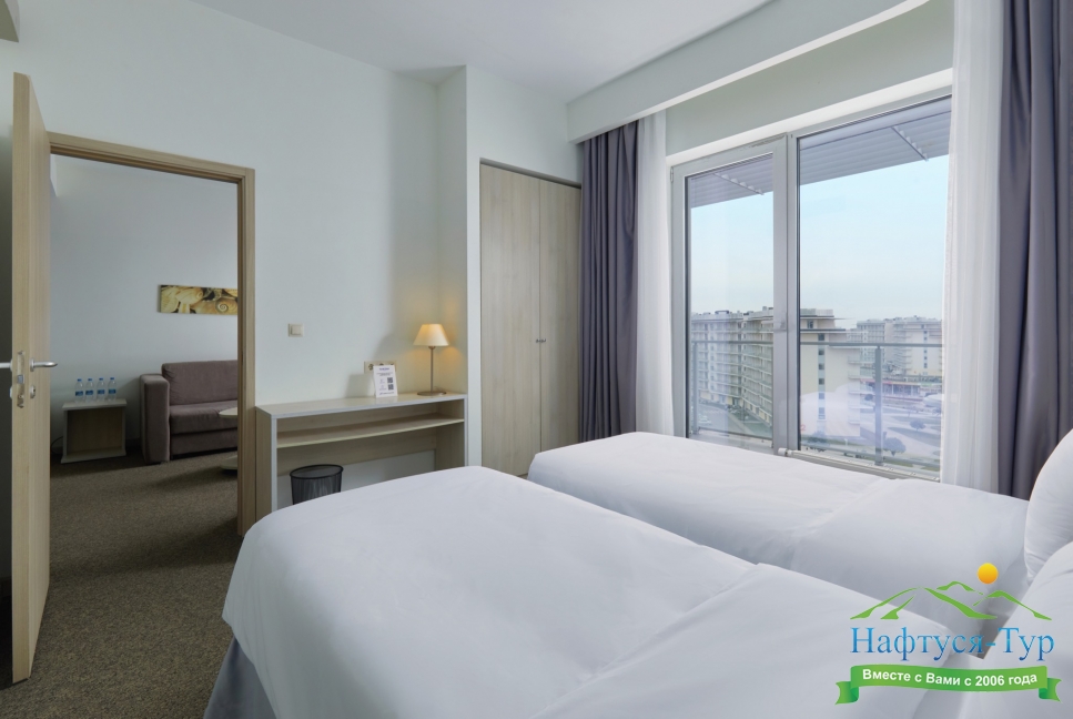 Расскажу про свой опыт пребывания на отдыхе. Номер был неплохой, довольно просторный, но не было шкафа. Все вещи хранила в сумках. Это, конечно, неудобно. Также не было в санузле жидкого мыла. Правда, по первой просьбе принесли.
