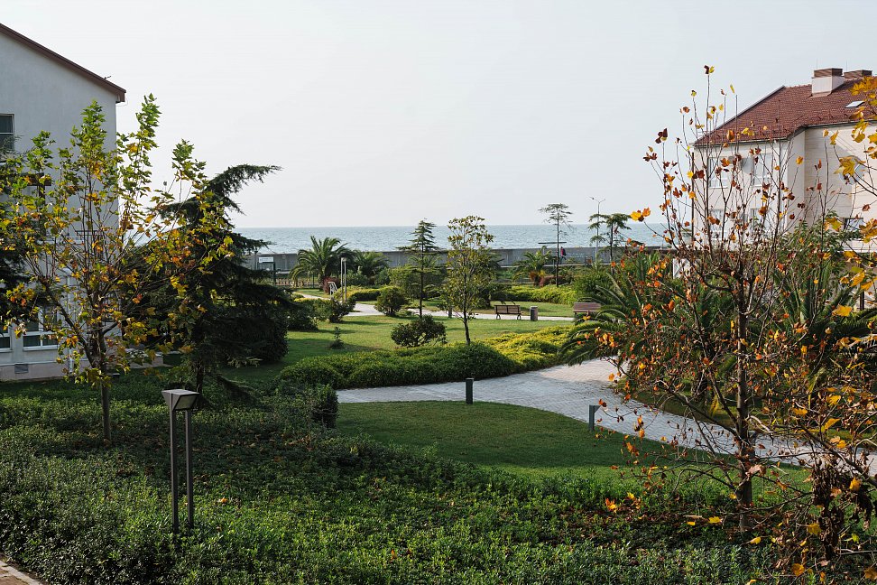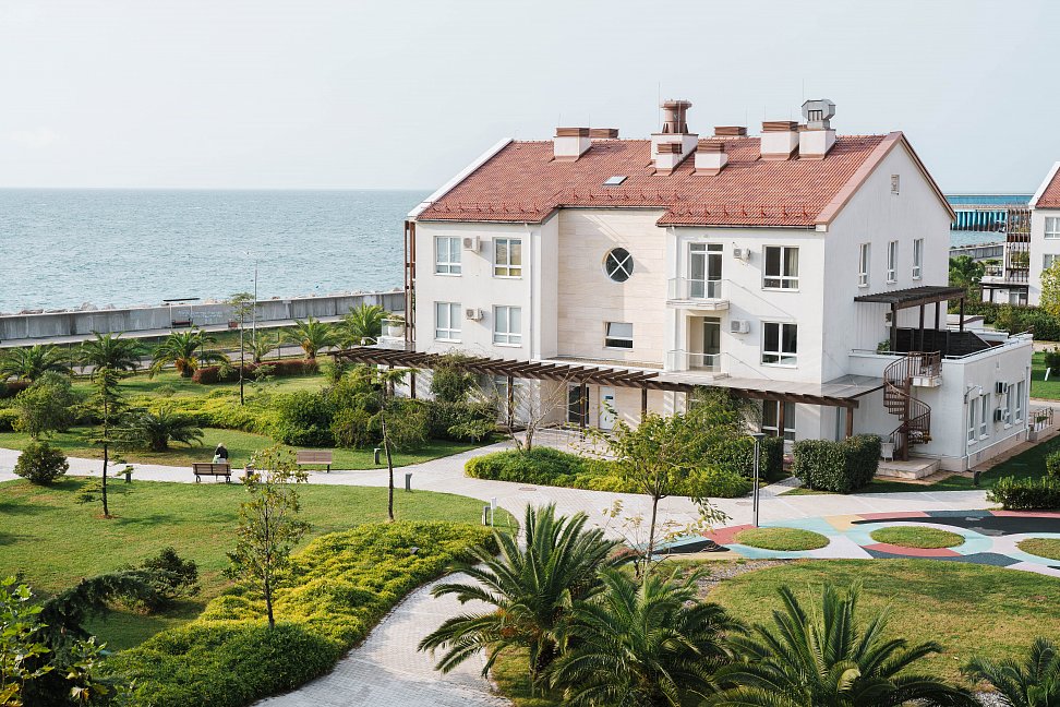Расположение: Первая линия у моря (100 м до пляжа), 27 км до центра Сочи, 6 км до аэропорта Адлер