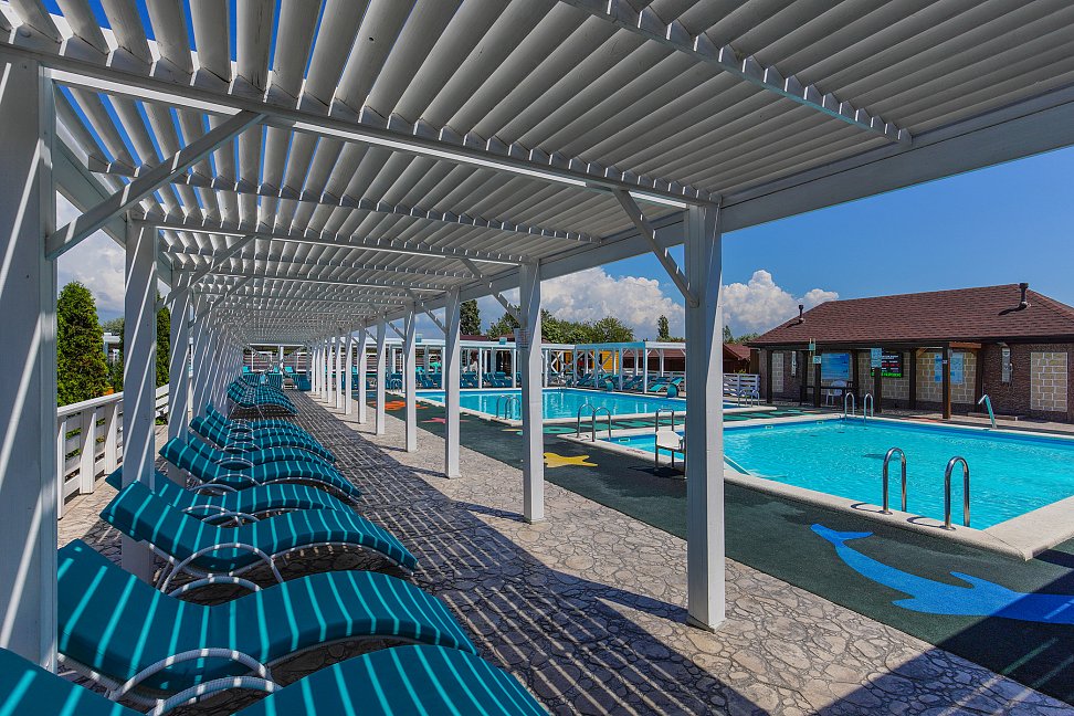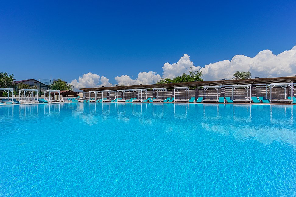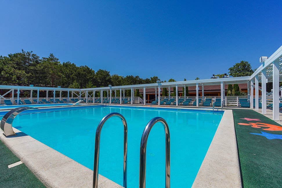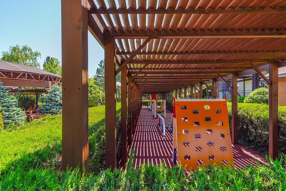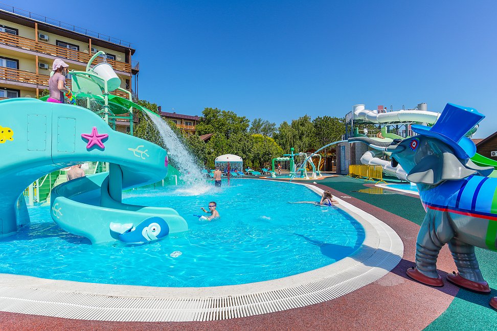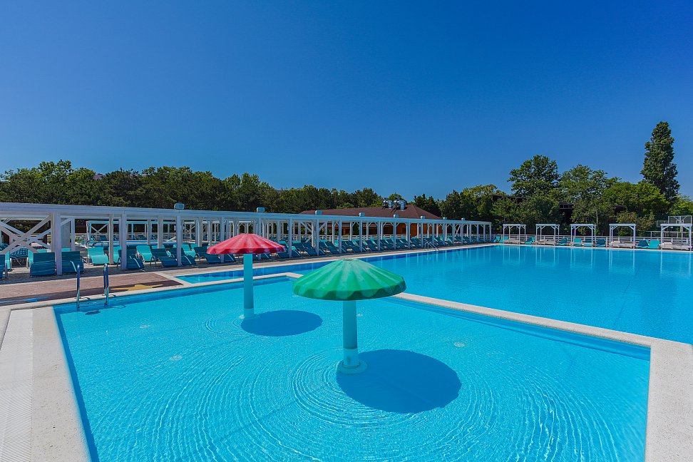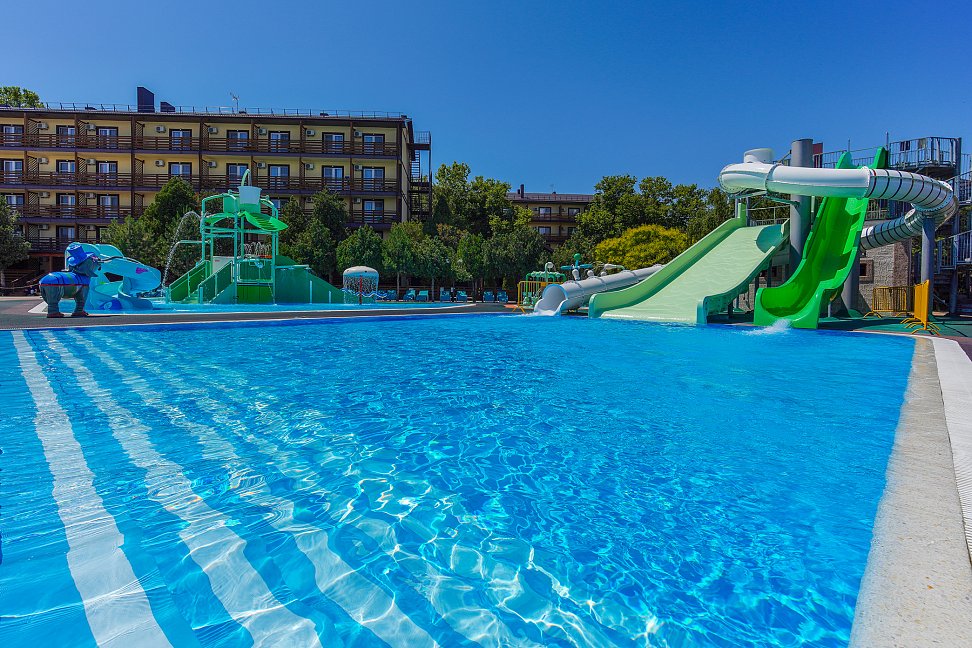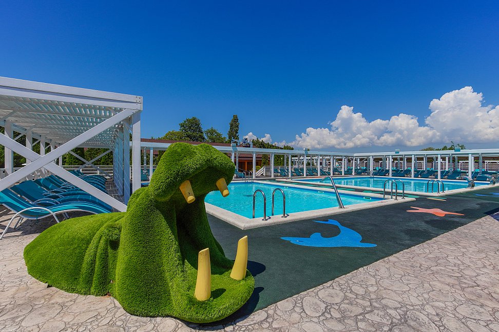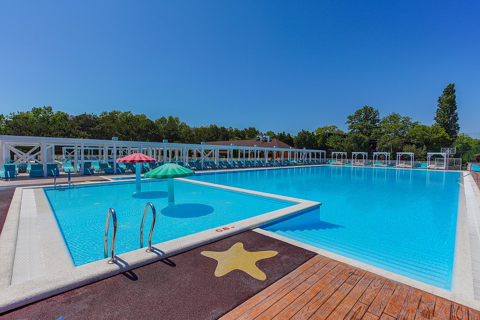 Отель с хорошей уютной и ухоженной территорией, с бассейном, лавочками, площадками для спорта и детскими площадками. Хорошее питание, очень вкусно и сытно, с овощами и фруктами. Питались мы 3 раза в день, по шведскому столу.