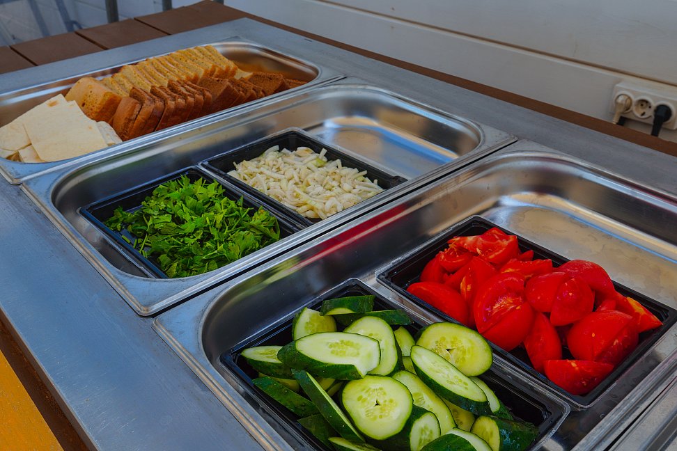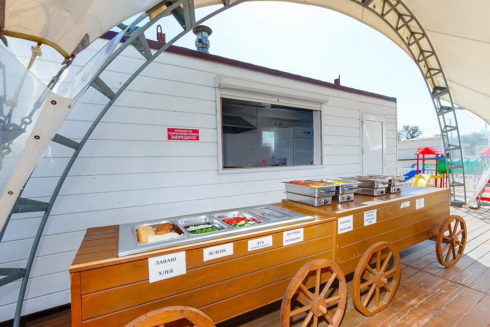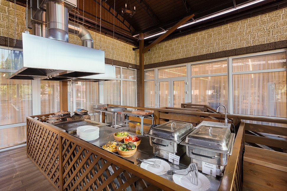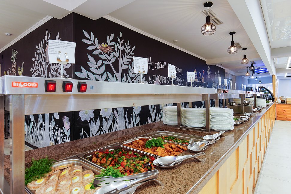 - питание «шведский стол»: еда и напитки (завтрак с 7-00 до 10-00, обед с 12-00 до 15-00, ужин с 18-00 до 21-00)