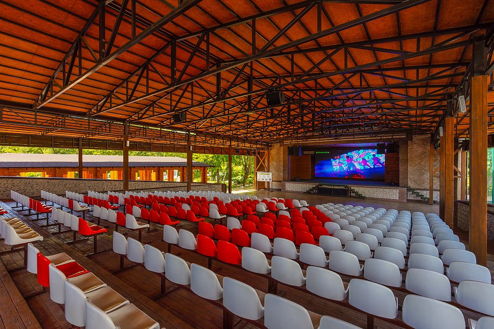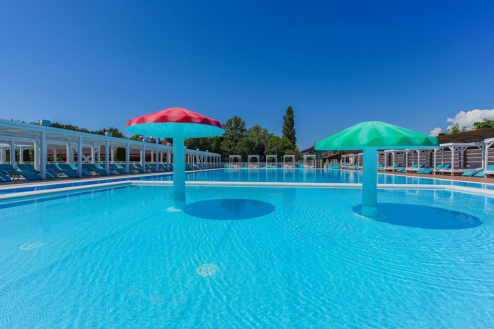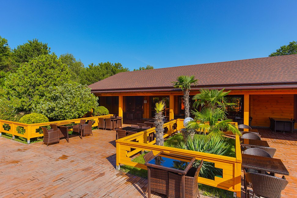 Ухоженная территория судя по всему бывшего пионерского лагеря. Питание очень вкусное и даже разнообразное. Жили в коттеджах - очень комфортно, кондиционер, санузел с душевой кабинкой, телевизор, холодильник.