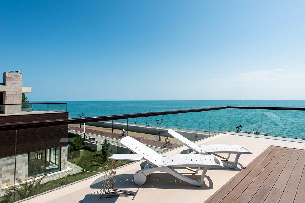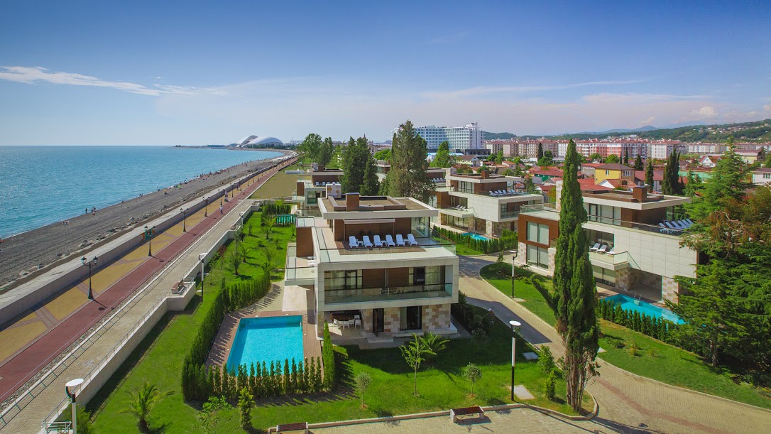 Расположение: Первая линия у моря (30 м до пляжа), 30 км до центра Сочи, 10 км до аэропорта Адлер