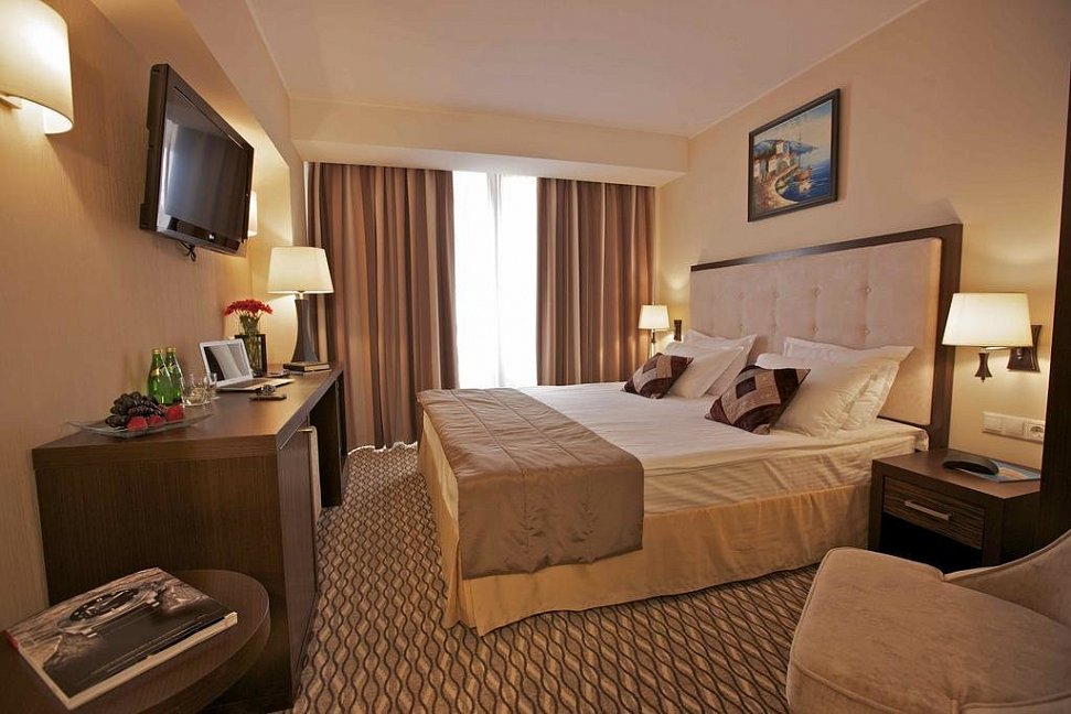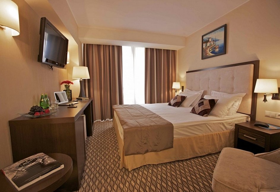 Были на отдыхе в июле, в 2015 году. Нам с женой понравилось. Гостинице уже много лет, но выглядит очень презентабельно. Номер был с ремонтом, без особых изысков, но приятный, так называемый премиум-стандарт.