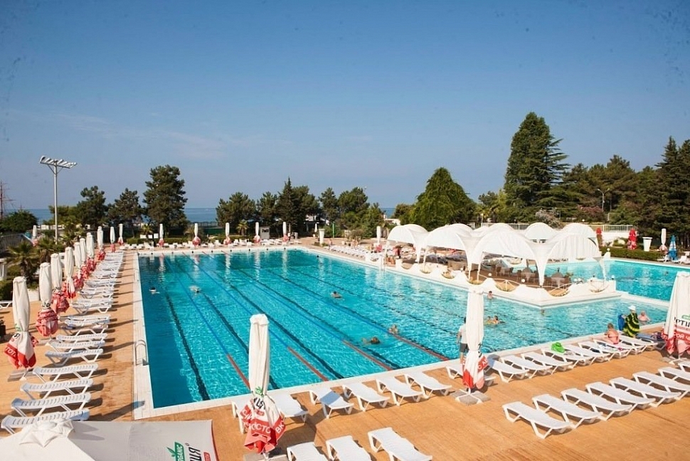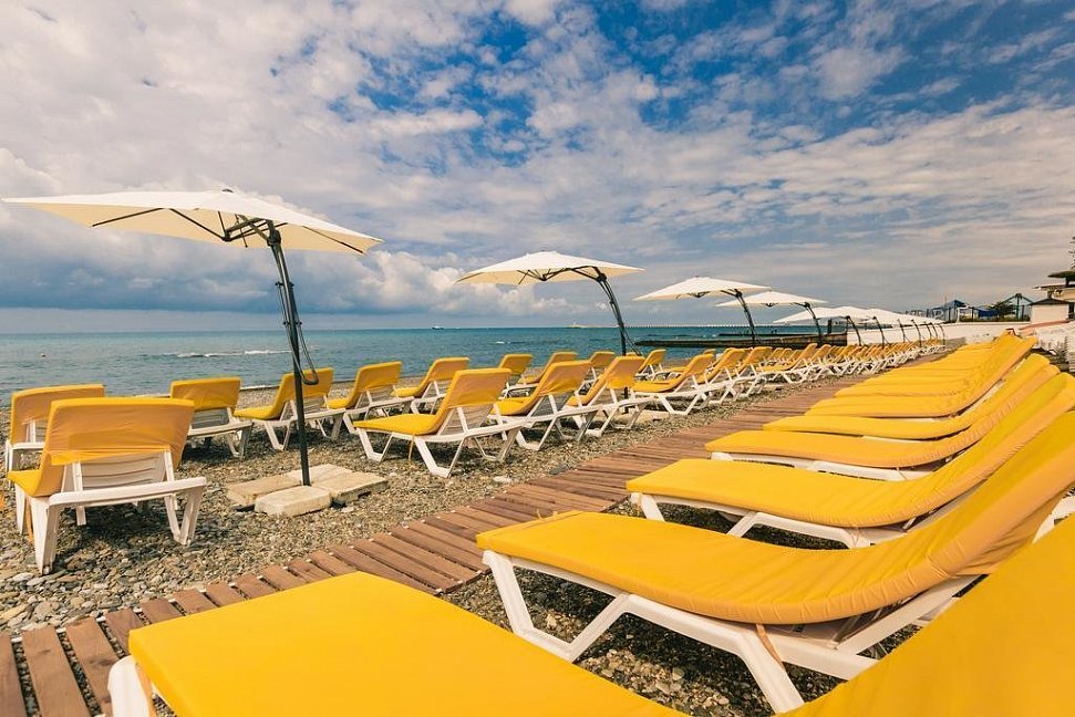 Расположение: Первая линия у моря (100 м до пляжа), 25 км до аэропорта Адлер