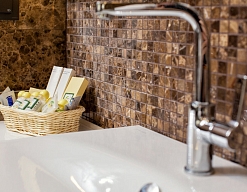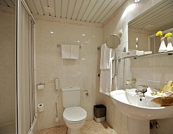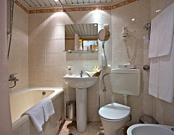 биде, с душем, тапочки, туалетные принадлежности, фен, халат
