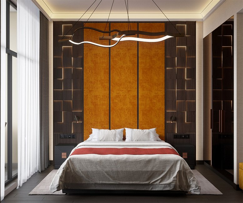 вешалка, зеркало, кресла, кровать двуспальная, прикроватные тумбочки, стол, стулья, тумба, шкаф