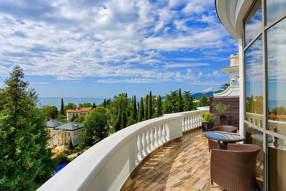 Элегантные номера с видом на море: Наши просторные номера предлагают захватывающий вид на Черное море, создавая атмосферу уюта и роскоши.