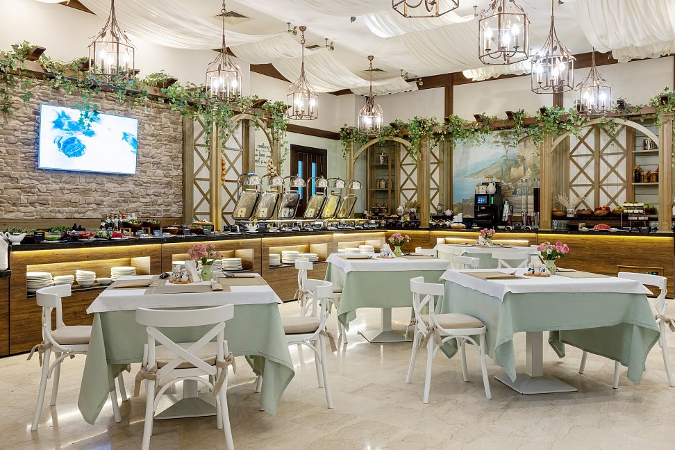 Отдыхали в отеле во второй половине половине июля 16 года. Отель на 5 +. В ресторане отличная кухня, все вкусно по-русски.