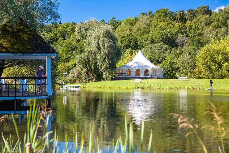 Здесь все как будто создано для проведения незабываемых свадебных церемоний: живописные ландшафты для роскошных фотосессий, торжественные банкетные залы, великолепные летние шатры и поляны у воды, площадки для выездной регистрации, разнообразные варианты банкетного обслуживания, комфортабельные номера для молодоженов и их гостей.