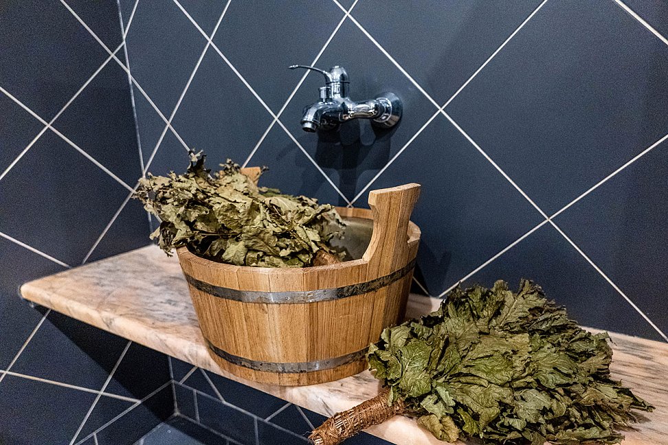 с душевой кабиной, тапочки, туалетные принадлежности, фен, халат