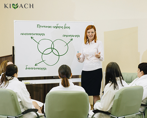 В процессе прохождения программы пациента сопровождают и консультируют психолог, диетолог, спортивный тренер, терапевт и другие специалисты, участие которых определяется в индивидуальном порядке.