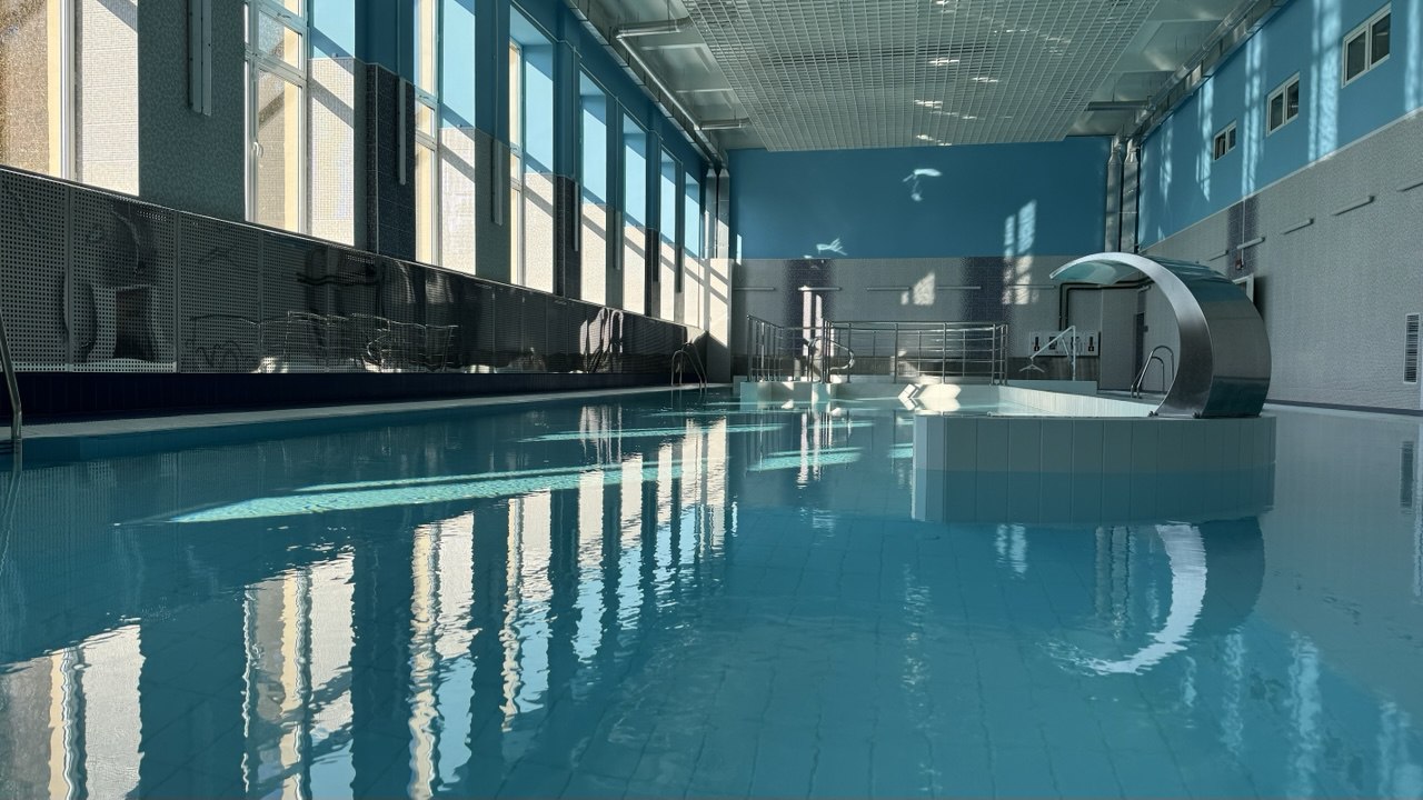 В здравнице имеется прекрасно оснащенный тренажерный зал, бассейн с тремя плавательными дорожками, залы для настольного тенниса и бильярда.