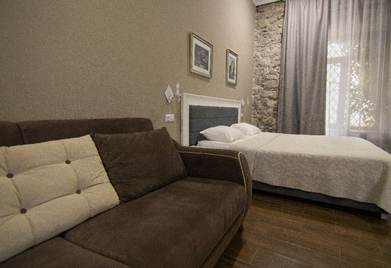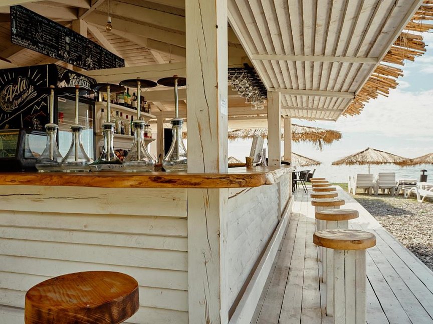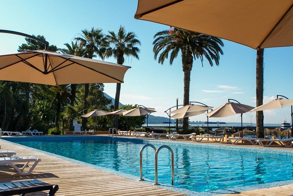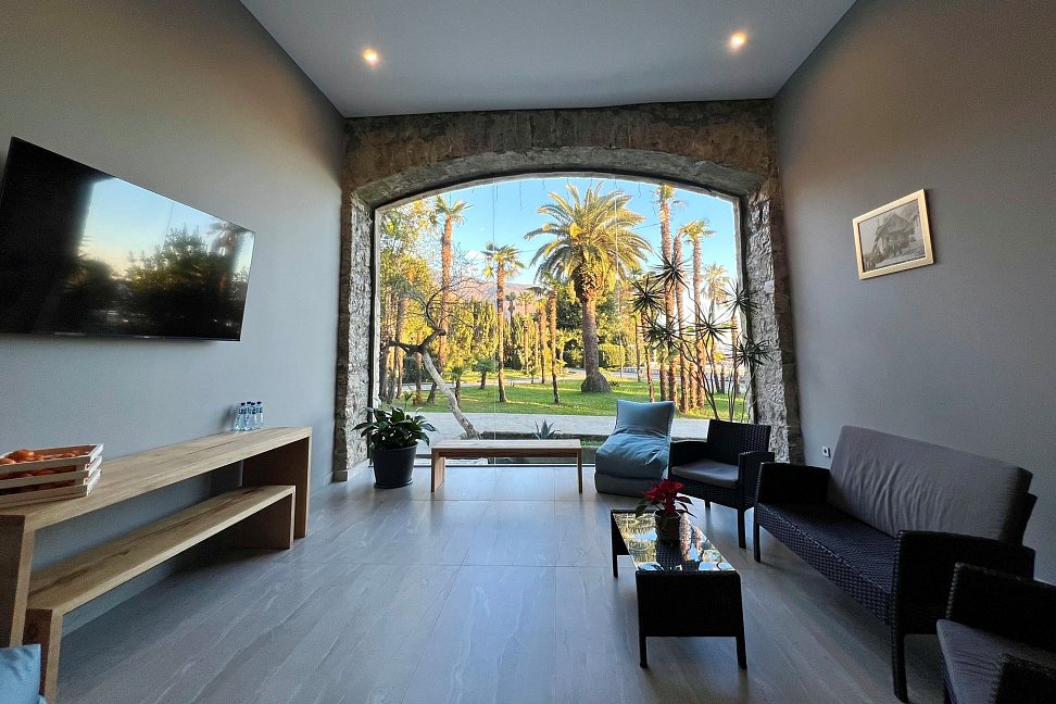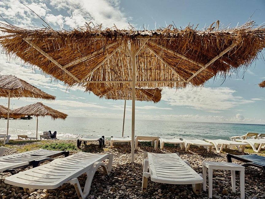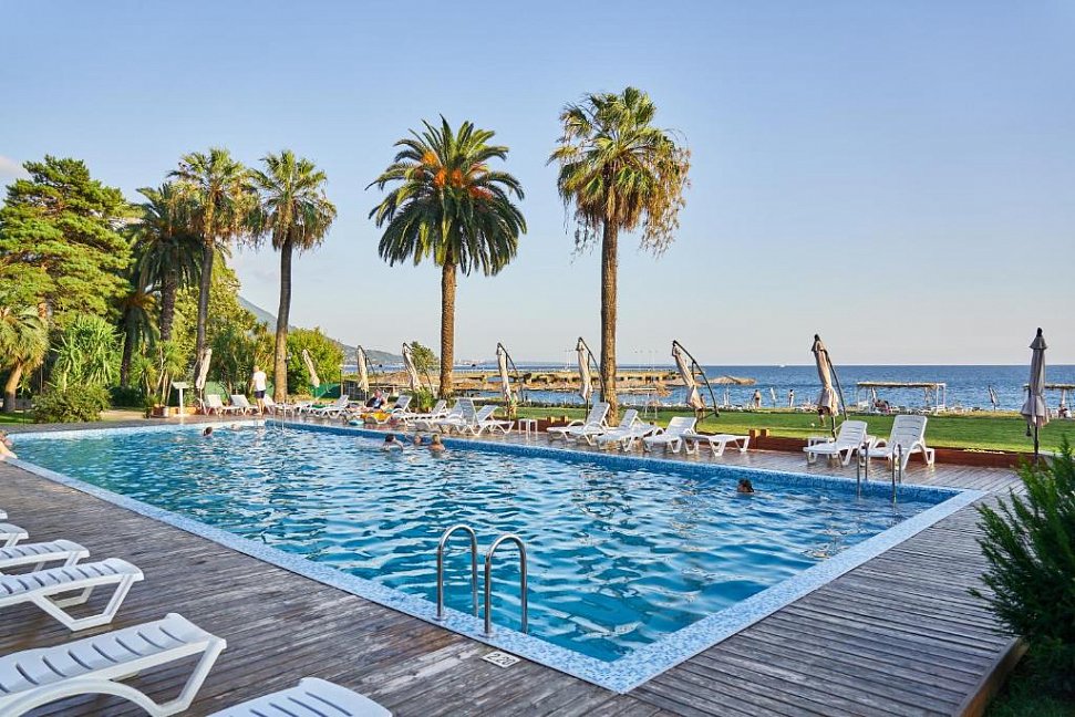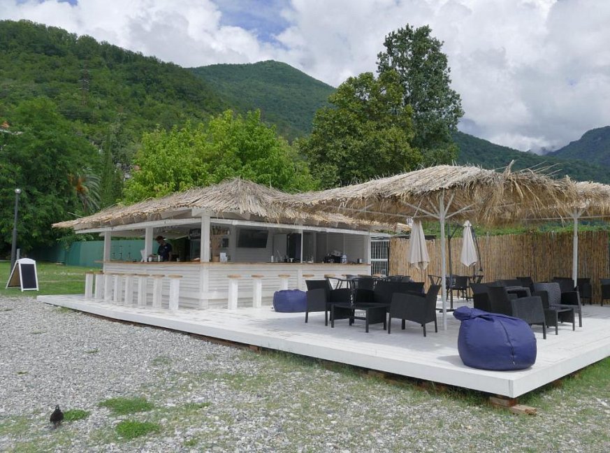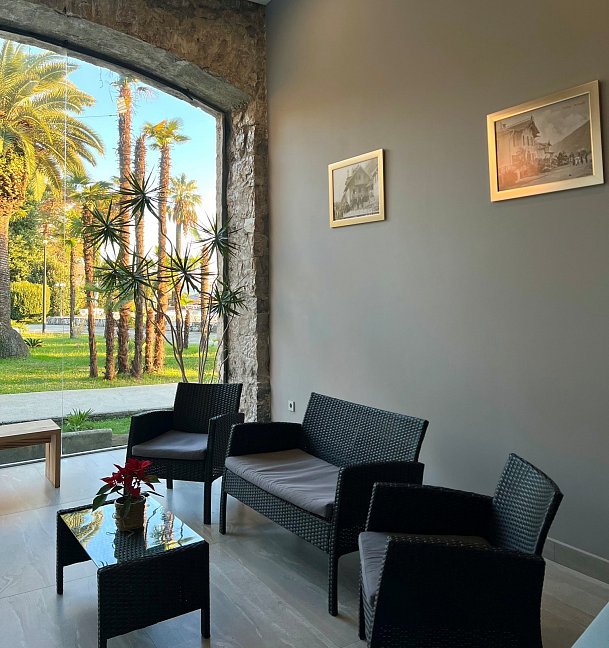 Расположение: Первая линия у моря (50 м до пляжа), 40 км до аэропорта Адлер. Гагра