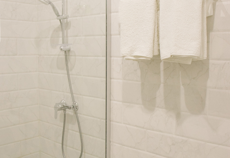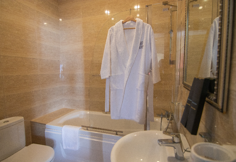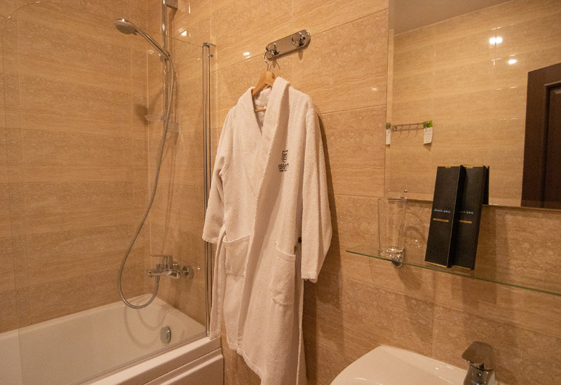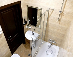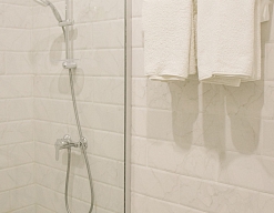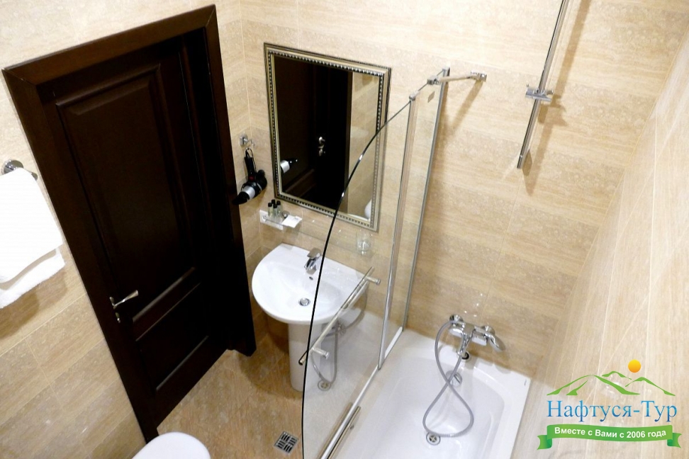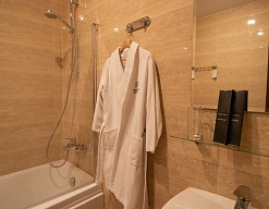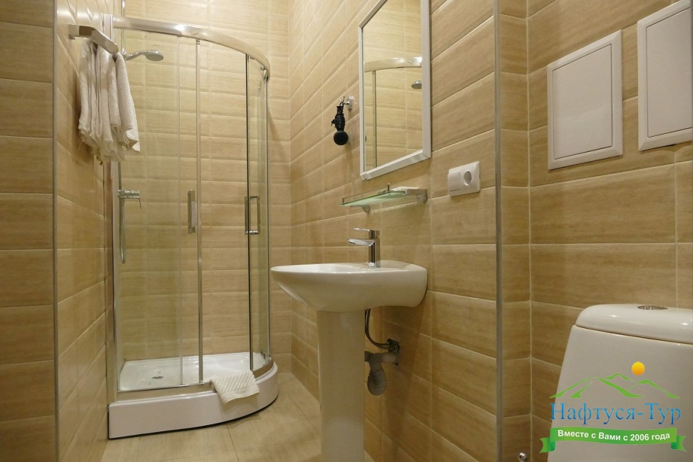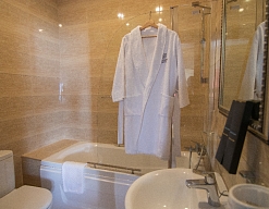 с ванной или душевой кабиной, туалетные принадлежности, фен
