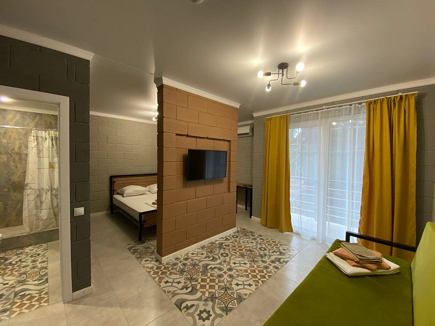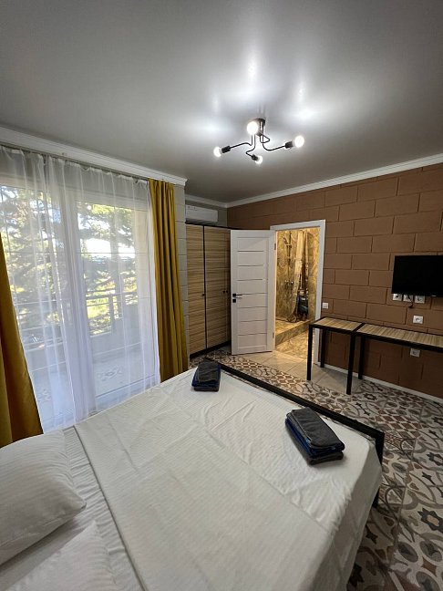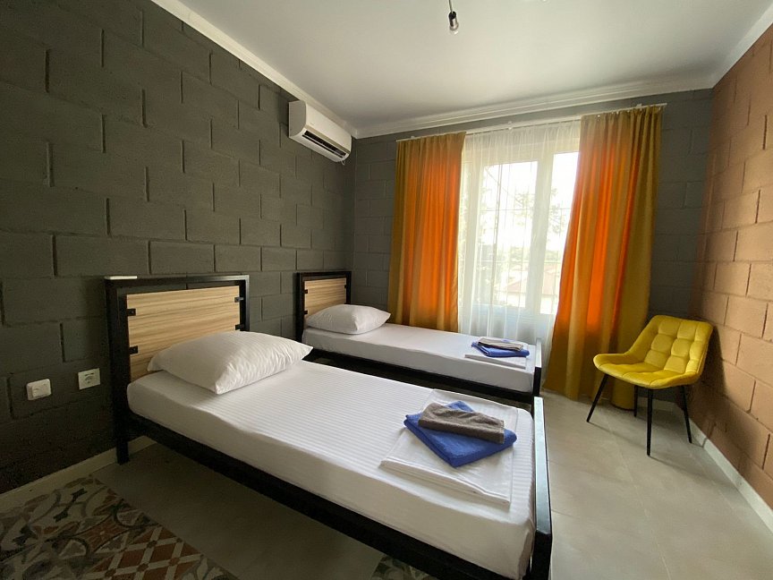 Расположение: Первая линия у моря (30 м до пляжа), 16 км до аэропорт Адлер