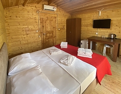 2-местный люкс-студио (макс. 2+1 чел., 35 кв. м, телевизор, центральное кондиционирование, душ, балкон, 2-спальная кровать, диван, туалет). Доп. место - еврораскладушка, может быть установлена без ограничения по возрасту..