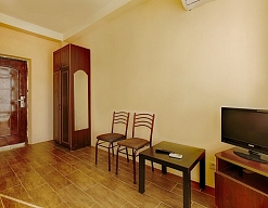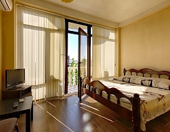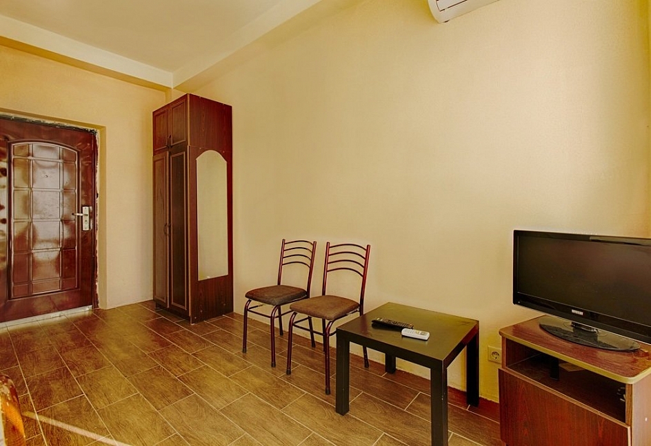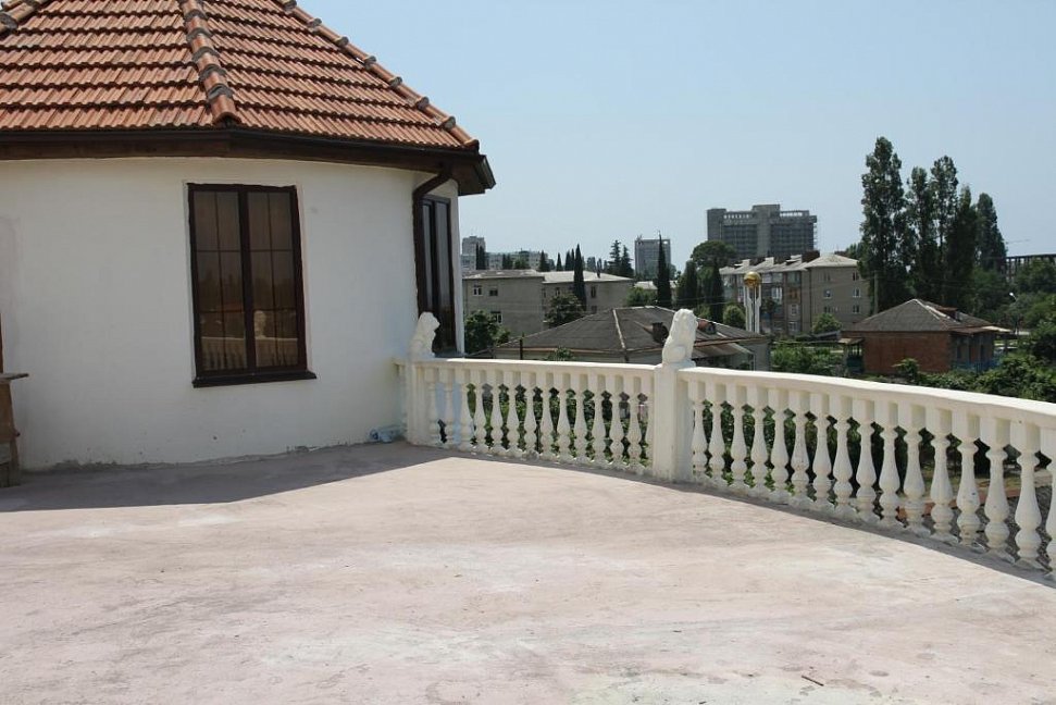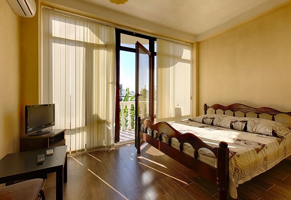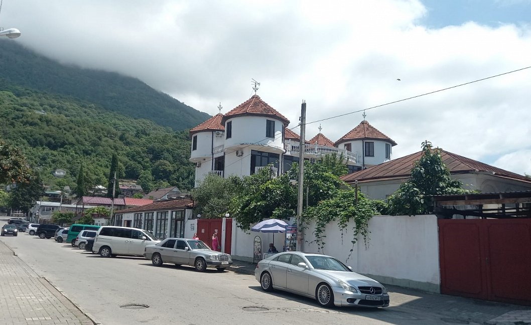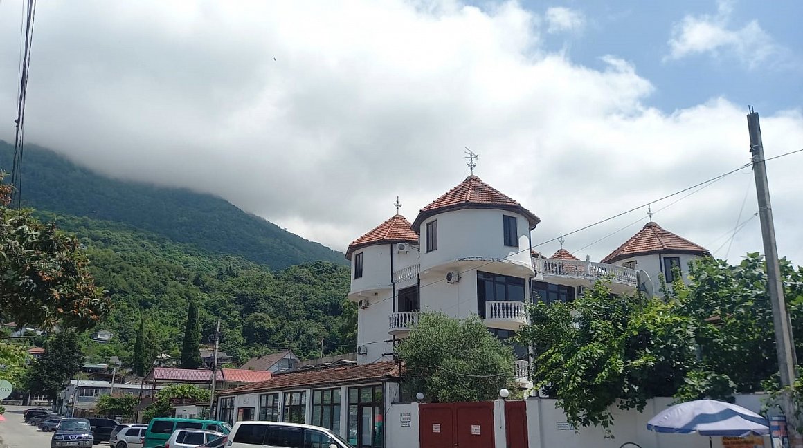 Расположение: Первая линия у моря (150 м до пляжа), 150 м до центра, 42 км до аэропорта Адлер