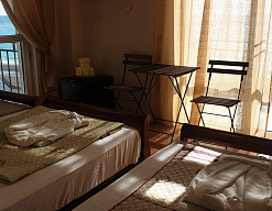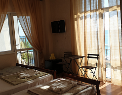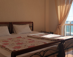 Расположение: Первая линия у моря (20 м до пляжа), 300 м до центра, 42 км до ж/д и аэропорта Адлера