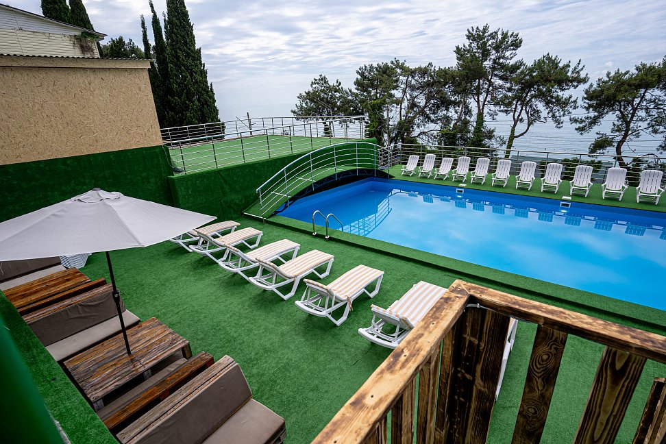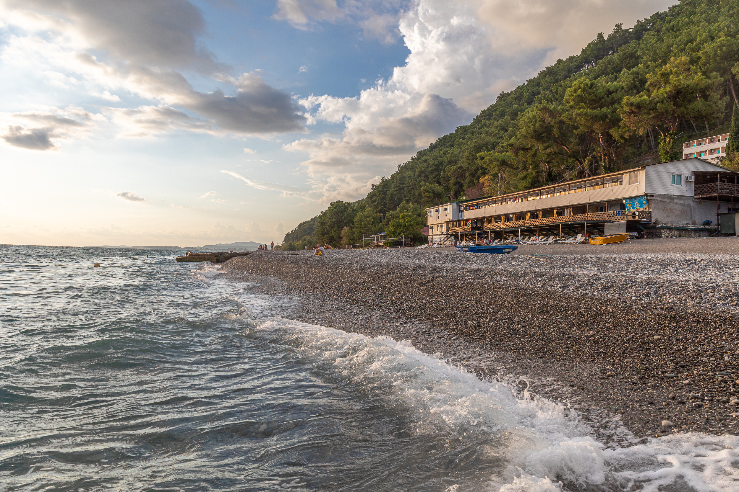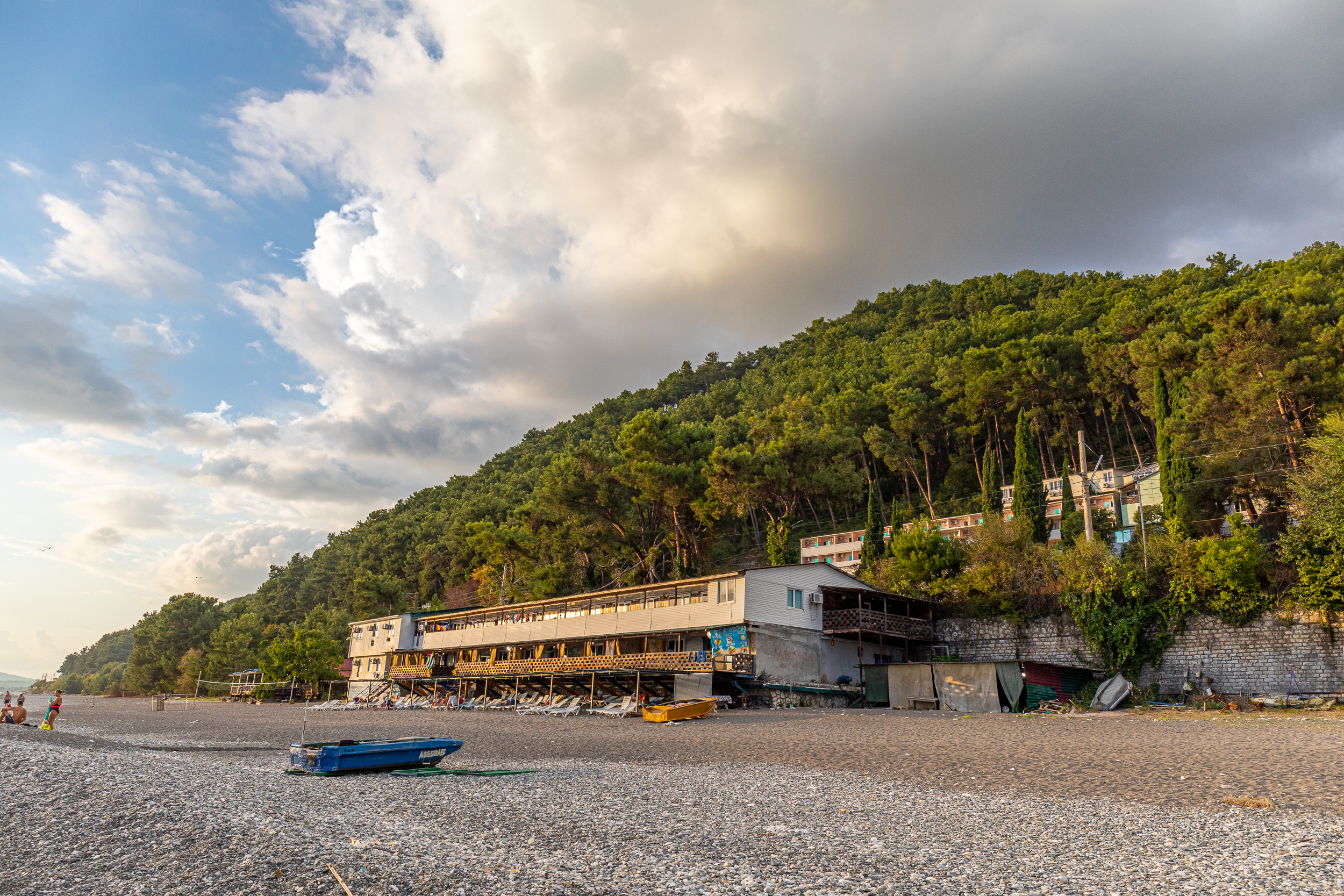 Расположение: Первая линия у моря (100 м до пляжа), 20 км до центра Гагры, 40 км до аэропорта Адлер