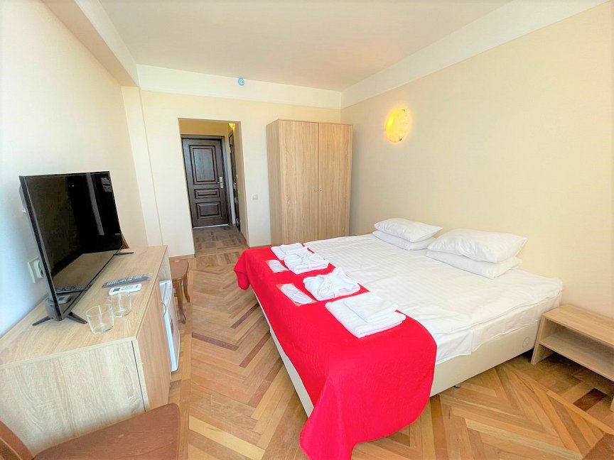 Расположение: Первая линия (50 м до пляжа), 80 км до аэропорта Адлер