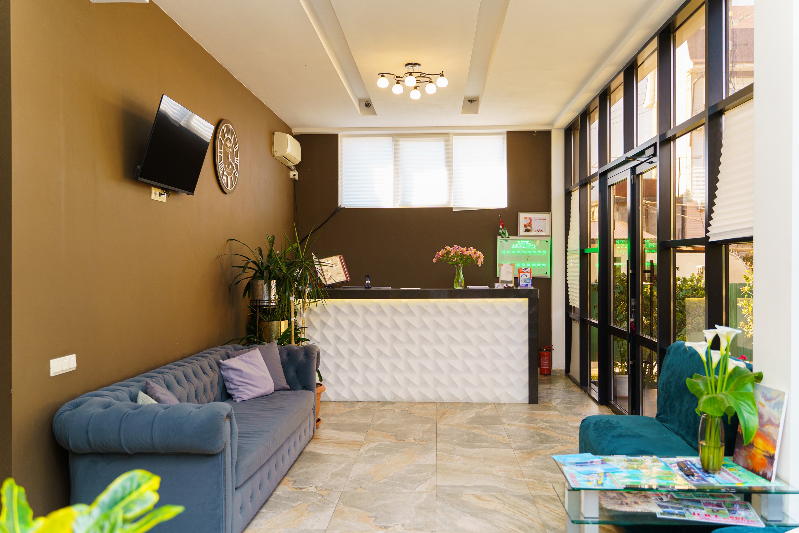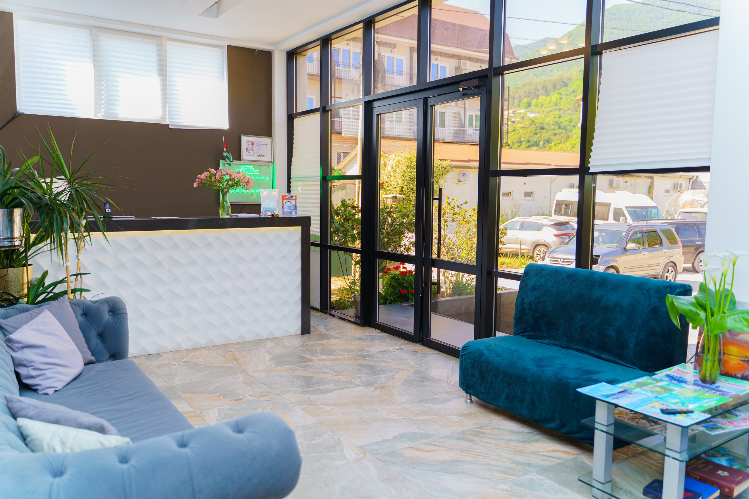 «Константа» расположилась в спокойном месте Нового Афона на первой береговой линии. Вы прямо из гостиницы можете спуститься на чистейший пляж.