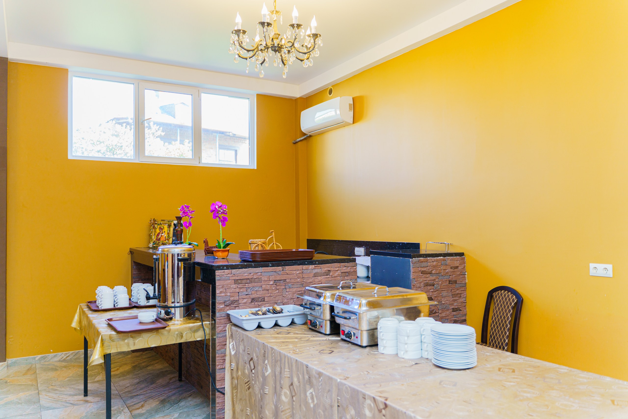 На небольшой благоустроенной охраняемой территории оборудован открытый подогреваемый бассейн, работает фонтан.