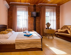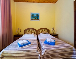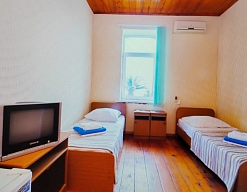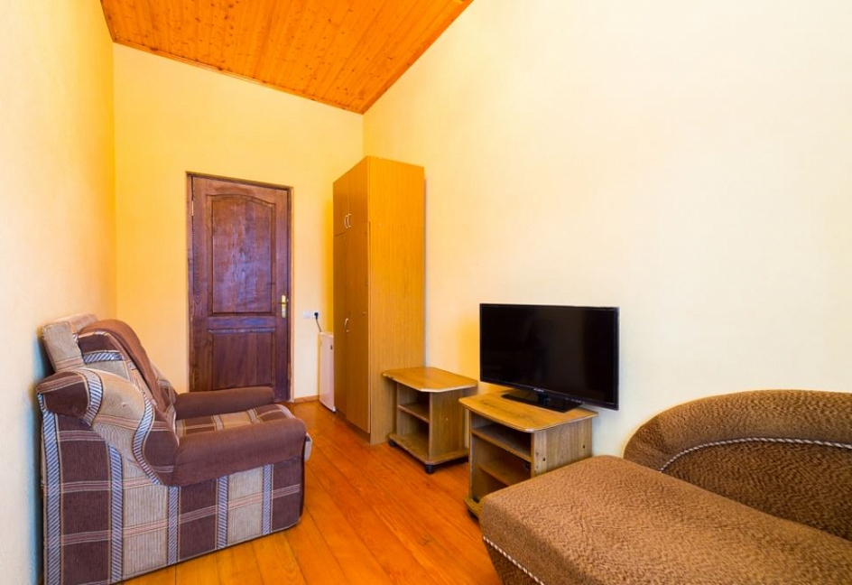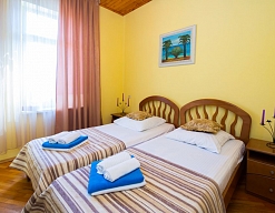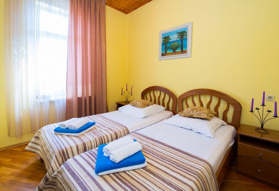 Расположение: Первая линия у моря (20 м до пляжа), 100 м до центра, 100 км до аэропорта Адлер