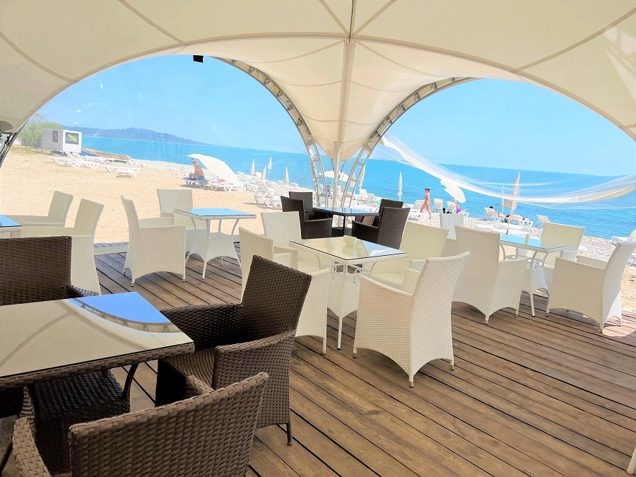При заселении сотрудники отеля сказали,что официального сайта у них нет,поэтому за то ,что пишут туроператоры об отеле они ответственности не несут.Пляж - большое разочарование.Идти 10 минут быстрым шагом не позднее 7 часов утра ,чтобы занять лежак и зонт.Пляж в с свободном доступе для всех желающих,поэтому для проживающих в отеле не хватает лежаков, .Живут в палатках туристы-дикари,туалет платный. Полотенце для пляжа не дают(купила на месте). Питание- завтрак нормальный,обед- за 10 дней ежедневно борщ без мяса,гороховый и суп-лапша чередовались(тоже без мяса),ежедневно огурцы,помидоры,иногда петрушка,укроп,базилик.Из мяса-куриные крылышки и бедра (не каждый день) очень не вкусно приготовлены.Около столовой протекает река в которую стекает канализация(в том числе и из отеля),поэтому соответствующй запах. Номер с балконом - очень тесный,кровати односпальные - во время отдыха мне хотелось спать с большим комфортом. Постельное белье-новое,белоснежное,регулярно меняли, также как и полотенца. одна тумбочка,нет стола.нет телевидения.
